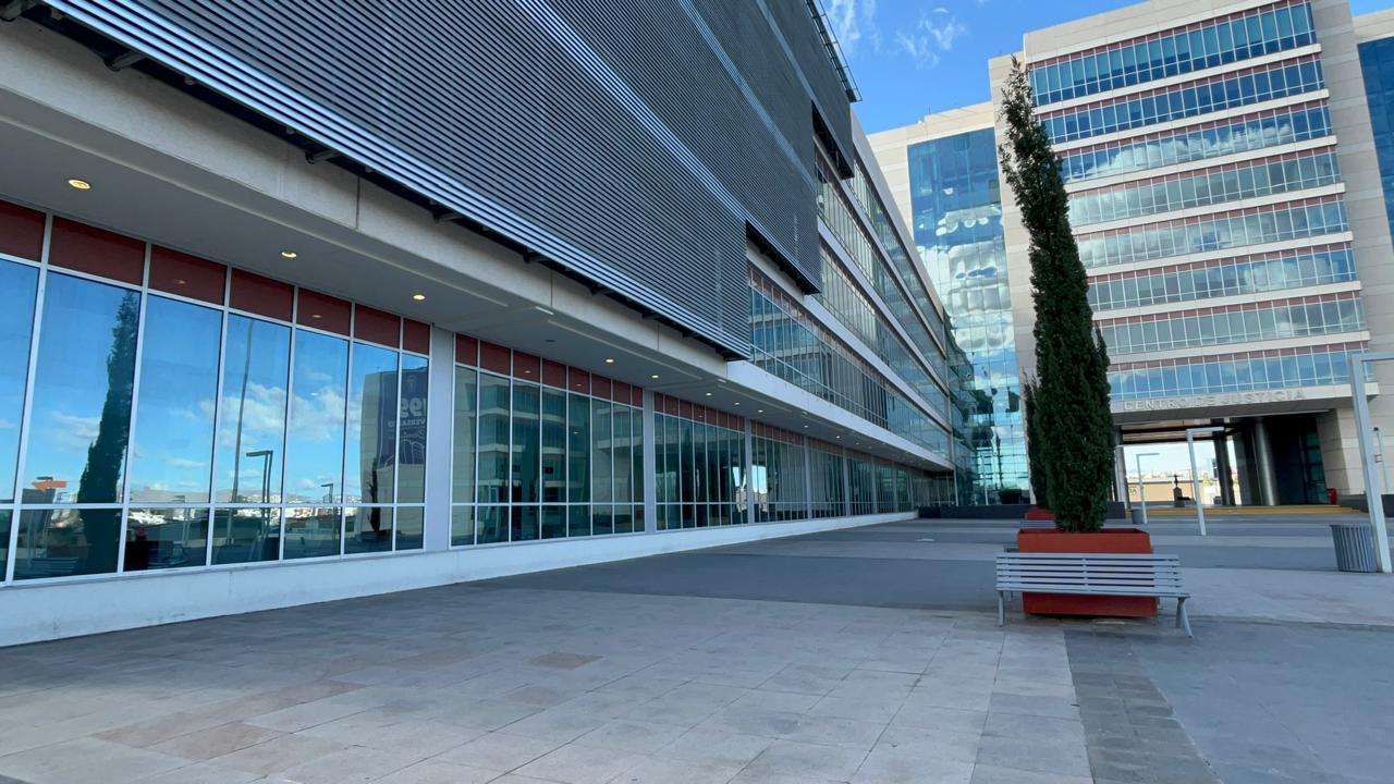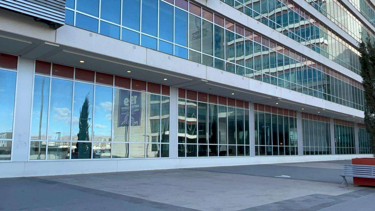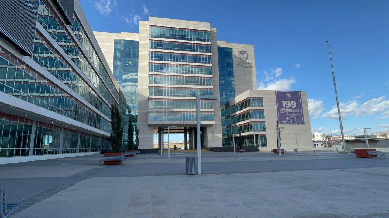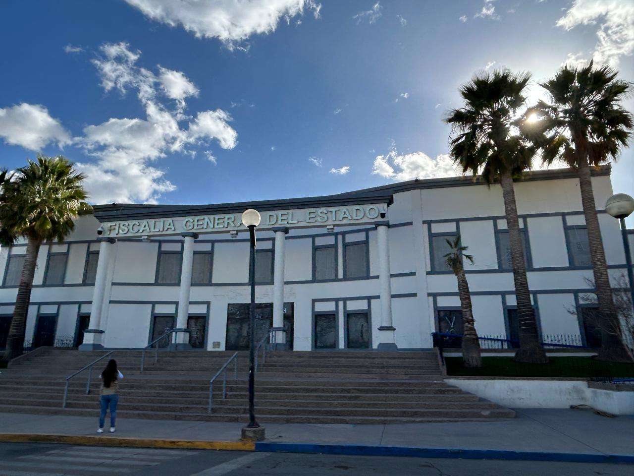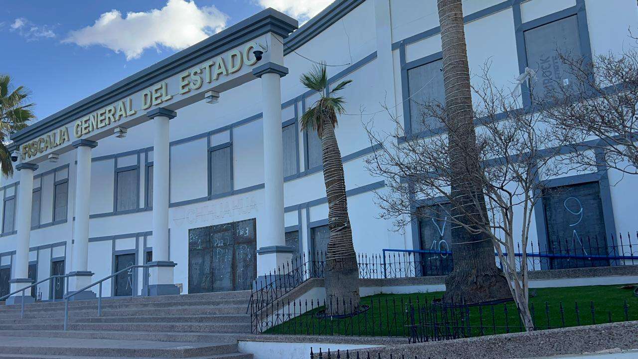Ubicada sobre el Boulevard Simón Bolívar y Séptima, la Fiscalía está cubierta con placas de metal en toda la parte baja, mientras que en la parte superior cuenta con placas que parecen ser de concreto.