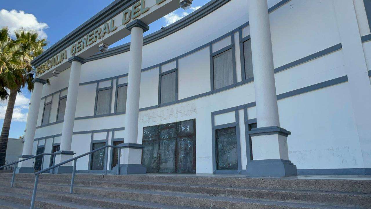 Chihuahua.- Las oficinas de la Fiscalía General del Estado fueron protegidas con placas metálicas debido a la marcha del 8M.