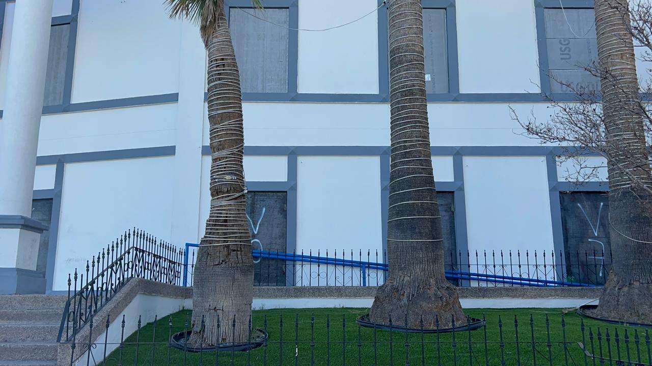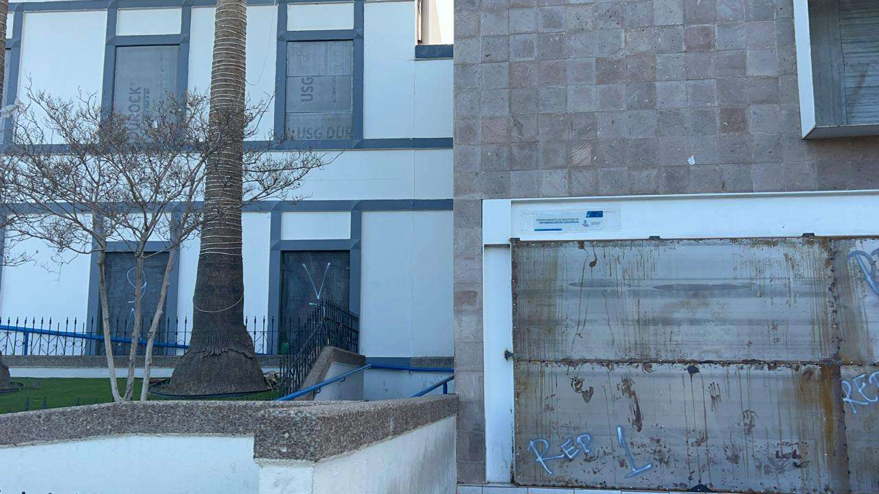 Fue desde la noche de ayer y la madrugada de hoy cuando personal de esta dependencia inició los trabajos para cubrir los vidrios de la Fiscalía General del Estado.