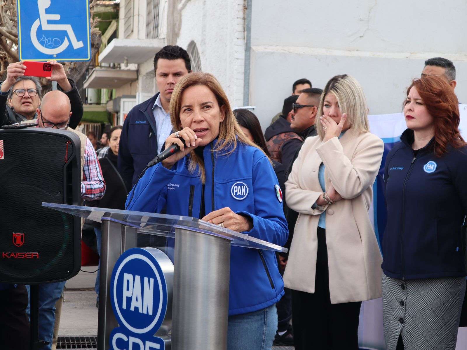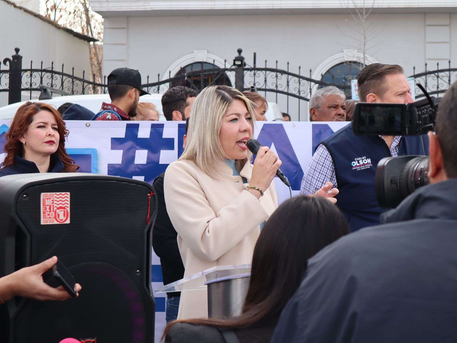Chihuahua.- El Partido Acción Nacional (PAN) en Chihuahua, encabezado por su presidenta Daniela Álvarez, junto a las diputadas federales Rocío González y Manque Granados, así como el Grupo Parlamentario del PAN, se manifestaron contra la reforma a la ley de Infonavit promovida por Morena.