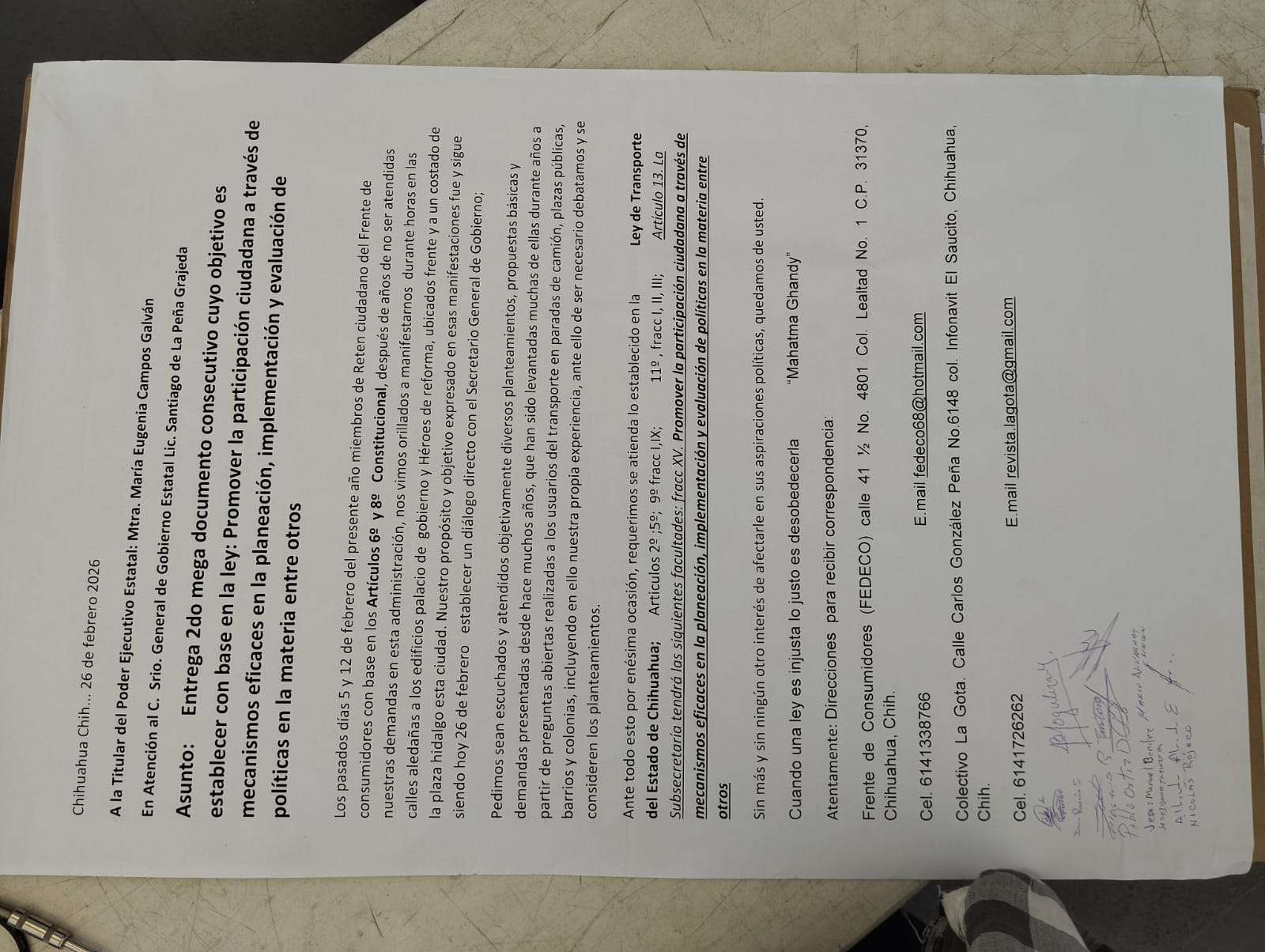 Ante la falta de diálogo con el secretario general de Gobierno del Estado, Santiago de la Peña, el grupo elaboró un macrodocumento que usarán durante las protestas, con el objetivo de presentar sus demandas y entablar un diálogo con las autoridades.
