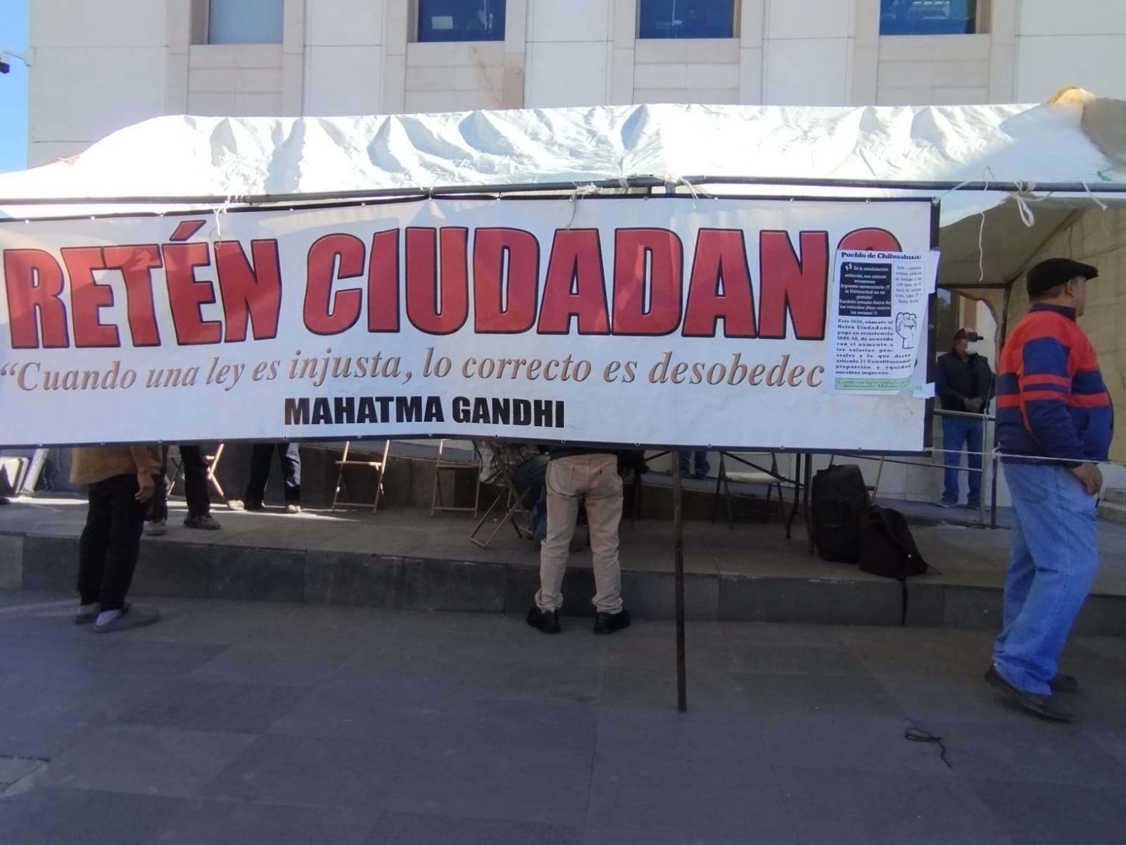 Chihuahua.- Integrantes de Retén Ciudadano se reunieron esta mañana en el edificio Héroes de la Reforma para organizar una manifestación en demanda de mejoras en el servicio de transporte público.