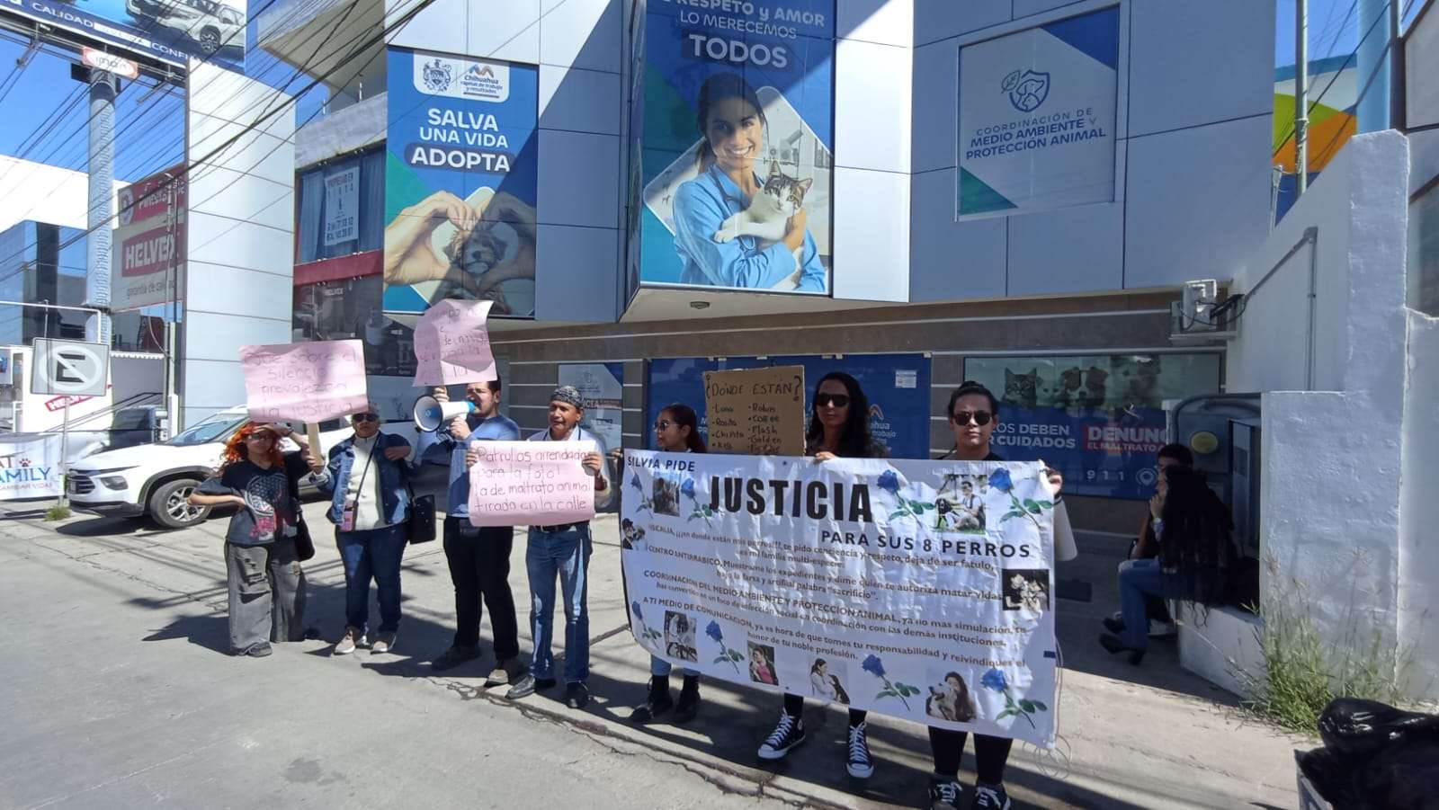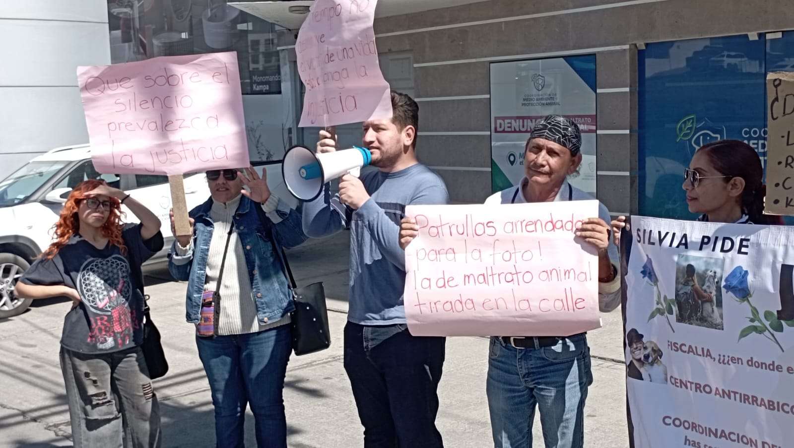 Chihuahua. — Abigail Irigoyen, presidenta de la asociación El Álamo de Zazú, junto a otras organizaciones de protección animal, se manifestó frente a la coordinación de Medio Ambiente y Protección Animal del municipio, ubicada en la lateral del Periférico de la Juventud.