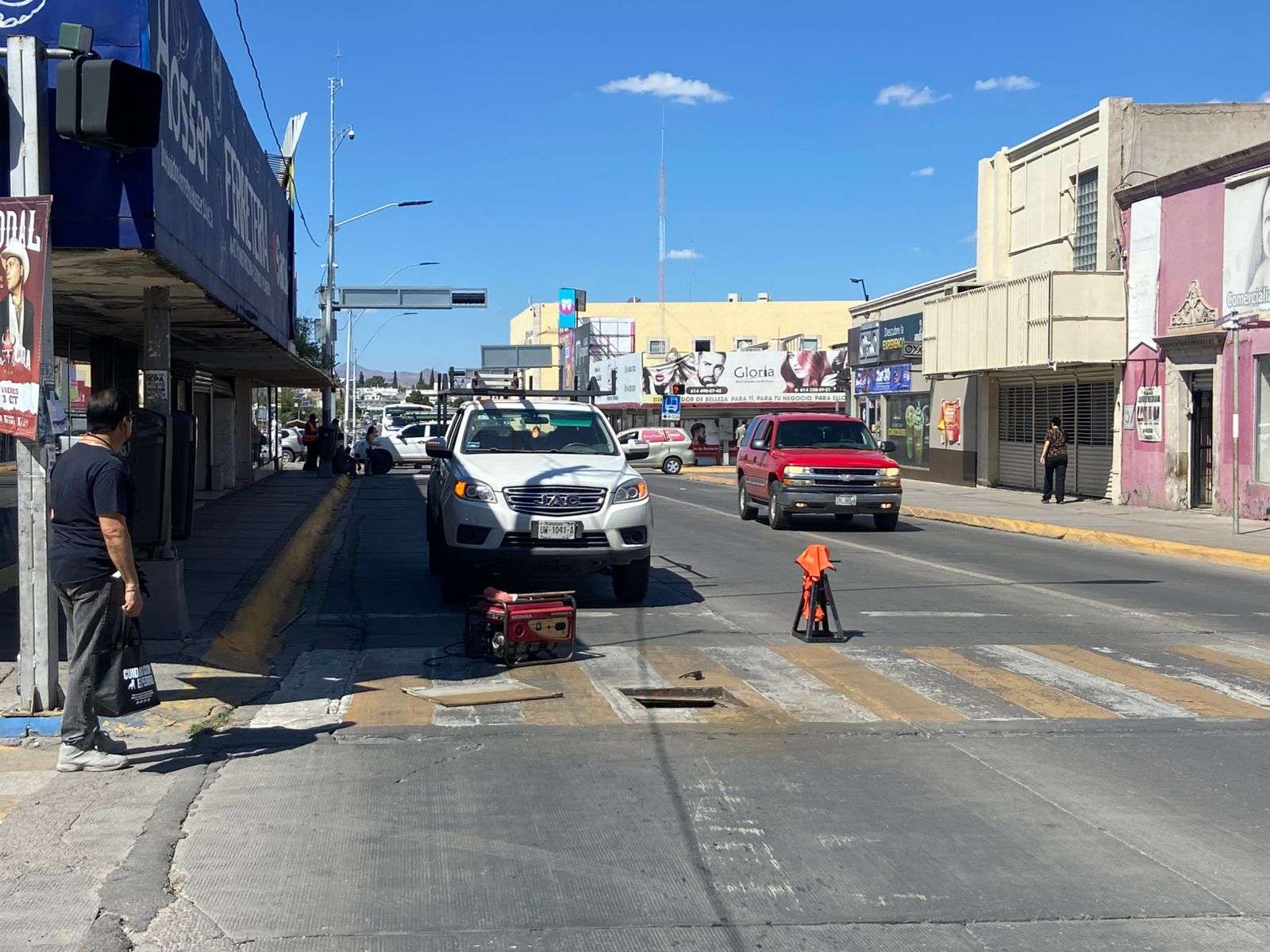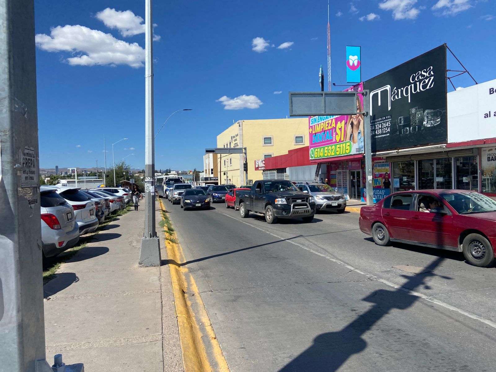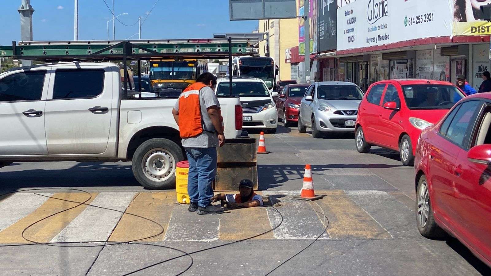 Chihuahua.- Un gran caos vial se registró en la avenida Ocampo debido a trabajos de instalación de fibra óptica por parte de una cuadrilla de Telmex, la cual cerró dos de los tres carriles de esta importante vía.