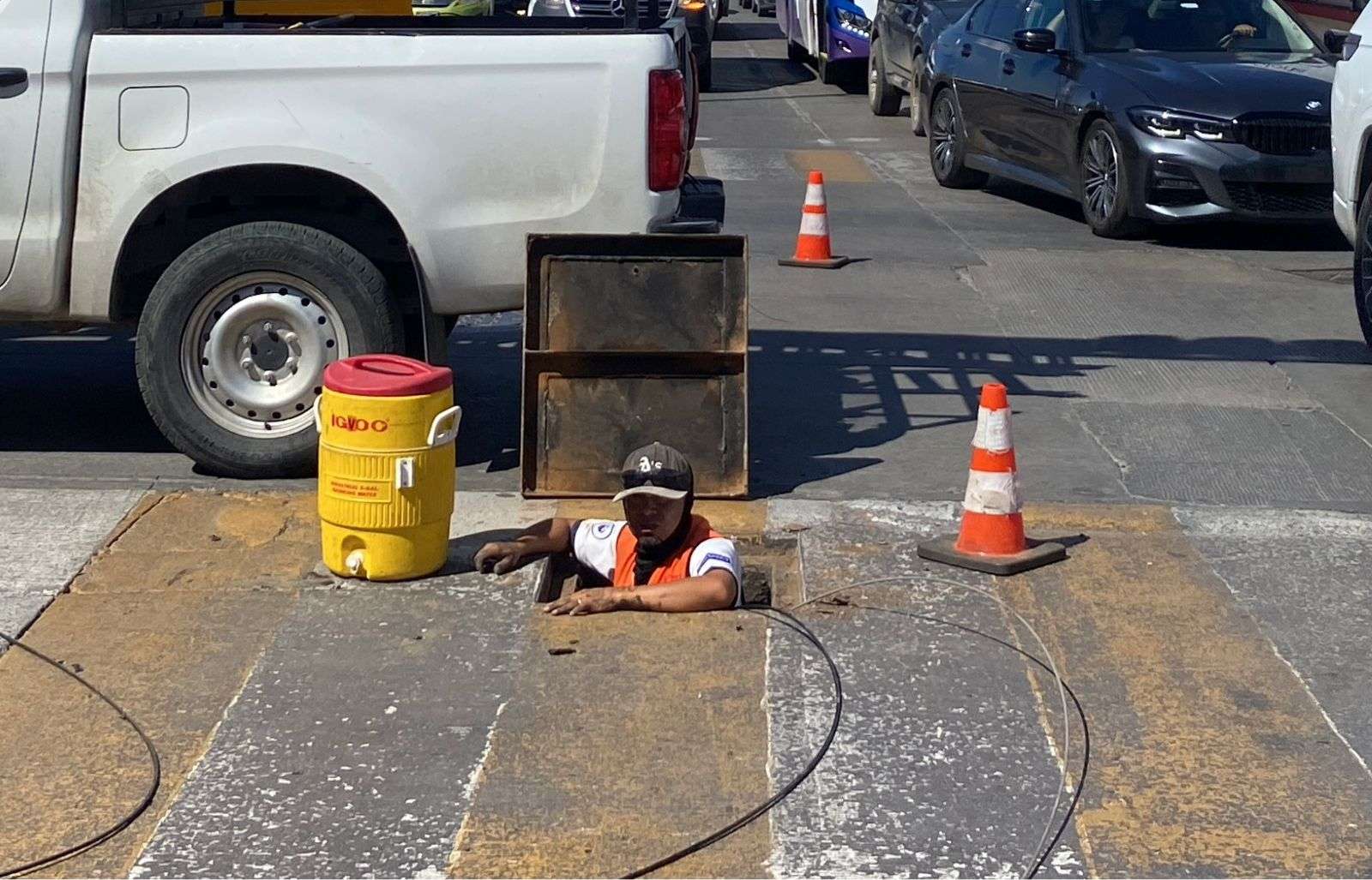En el lugar no se encontraba ninguna autoridad vial que abanderara o dirigiera el tránsito. Según los trabajadores, el cierre se mantendría al menos otra media hora mientras se completaba el cruce de los cables de fibra óptica.