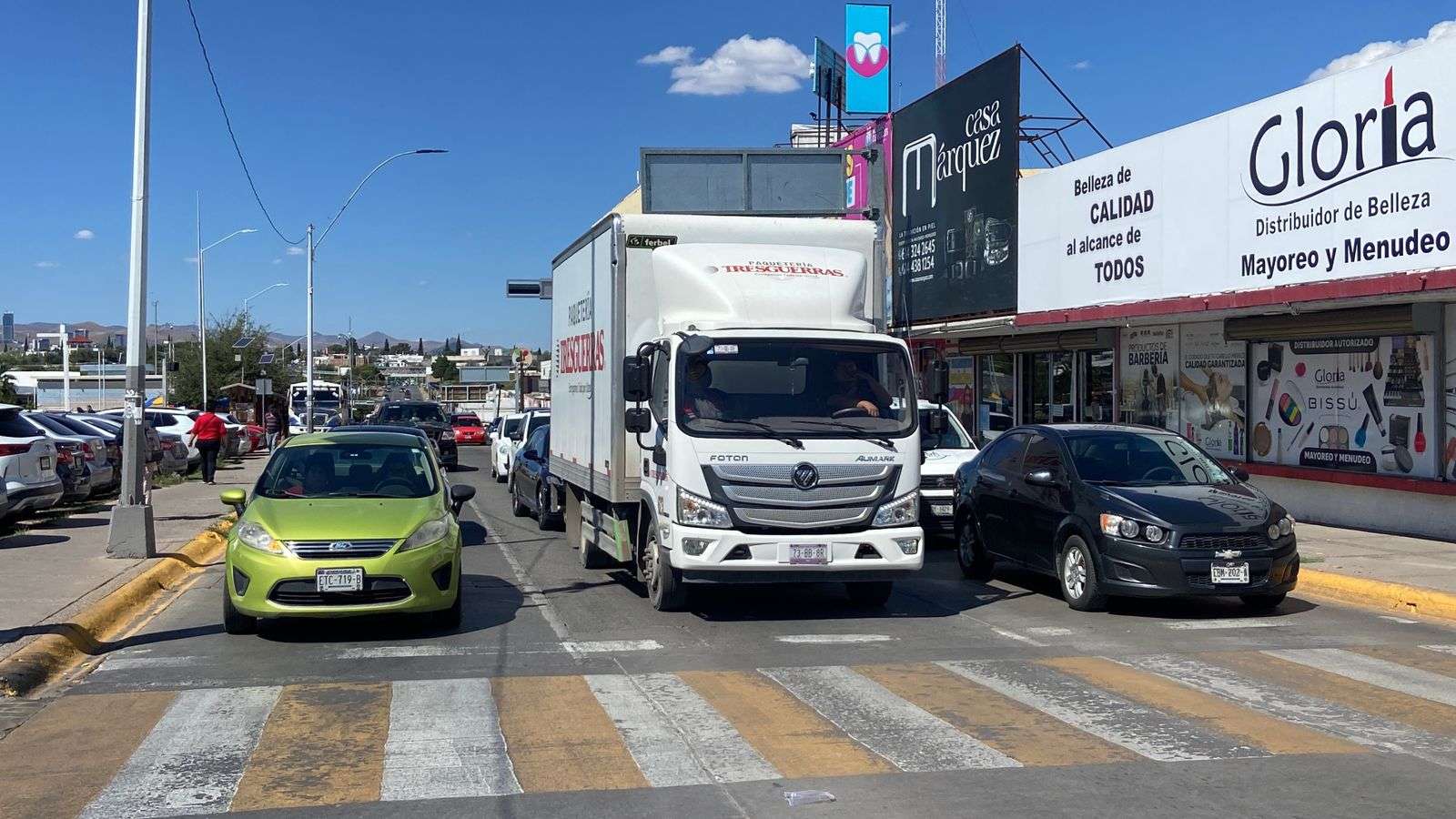 El cierre se realizó con camionetas de la empresa, en el tramo comprendido entre las calles Juárez y Libertad, lo que provocó que la fila de vehículos se extendiera hasta la avenida Progreso.