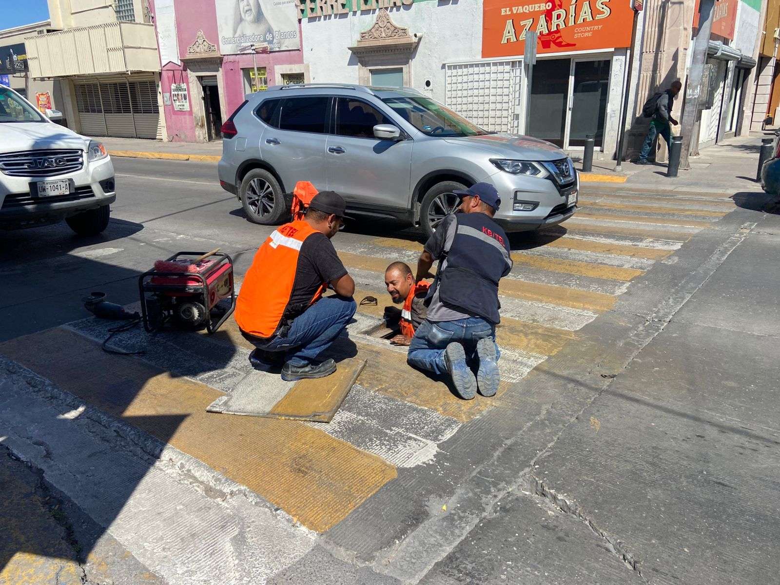 Quién sabe si los dos hombres son policías o no, pero al menos se bajaron de la patrullota, una camioneta Chevrolet de modelo reciente, que, según nos comentan y si no le falló la vista de quien los vio, es la número económico P-810.