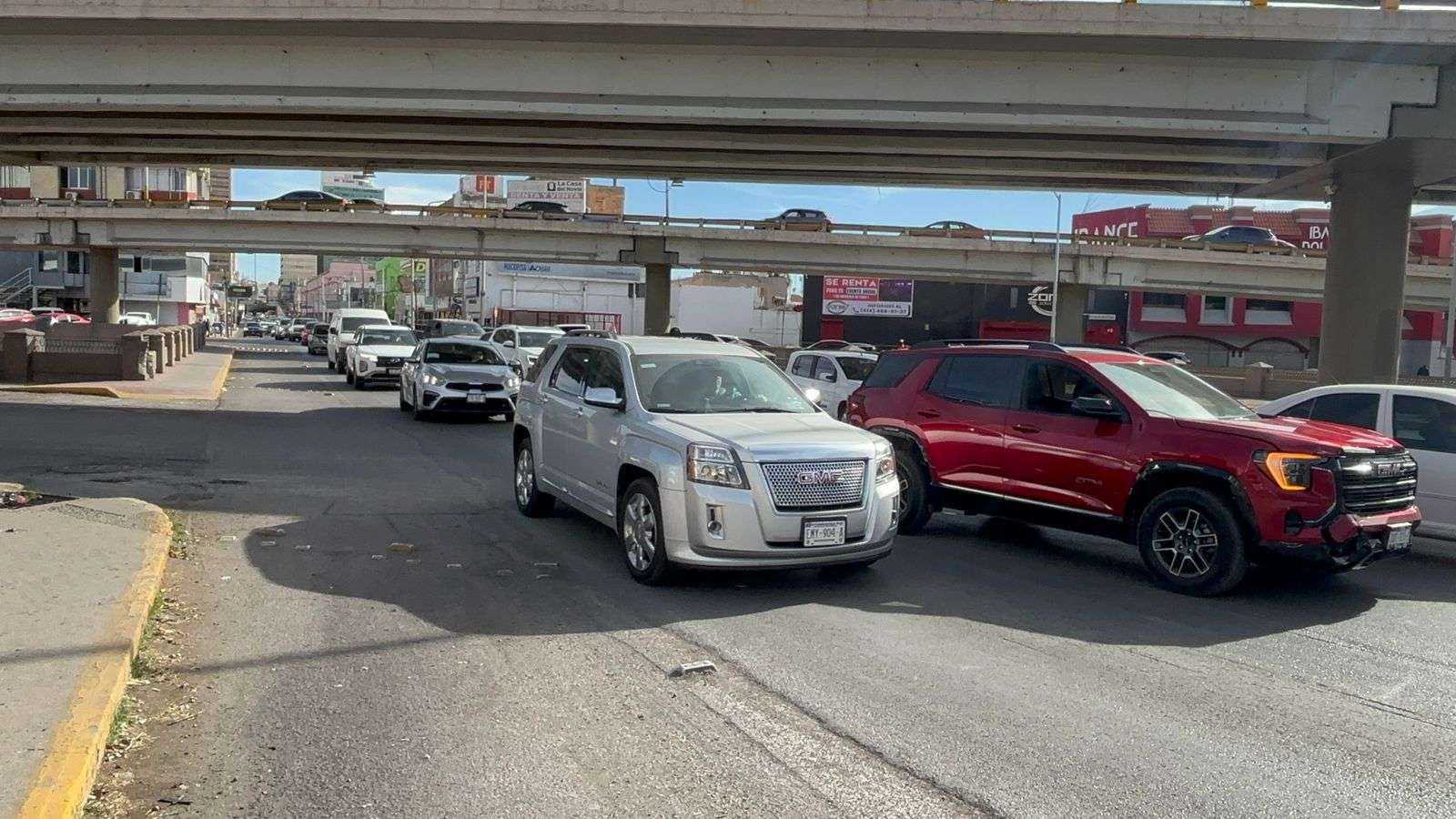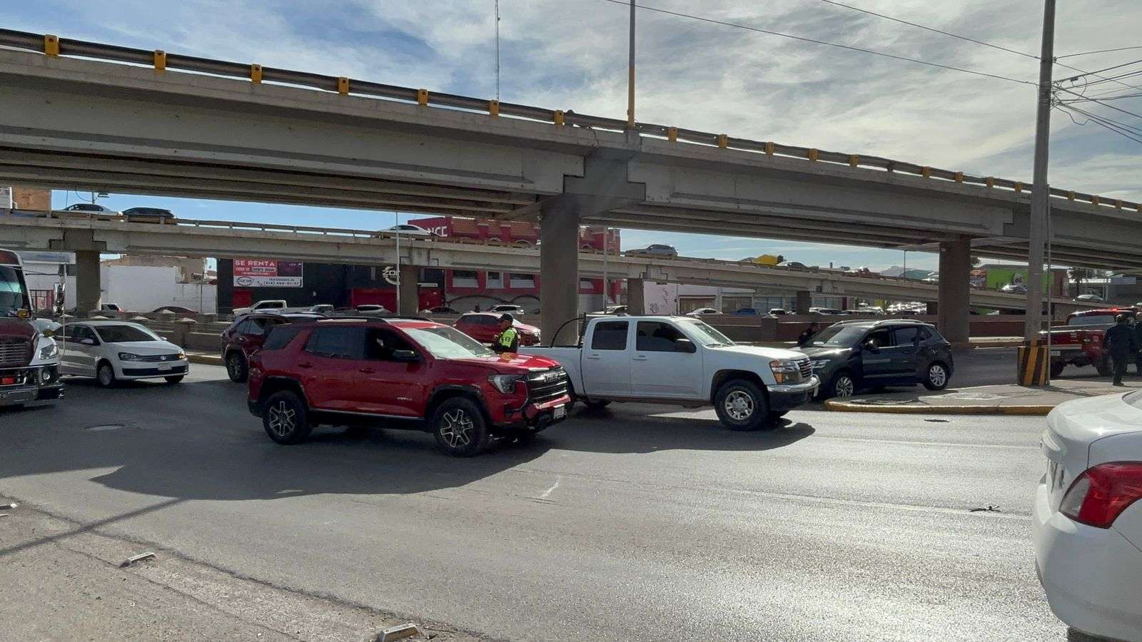 Chihuahua, Chih.- Un accidente automovilístico provocó un cuello de botella en el cruce de la avenida Independencia y el bulevar Teófilo Borunda Norte.