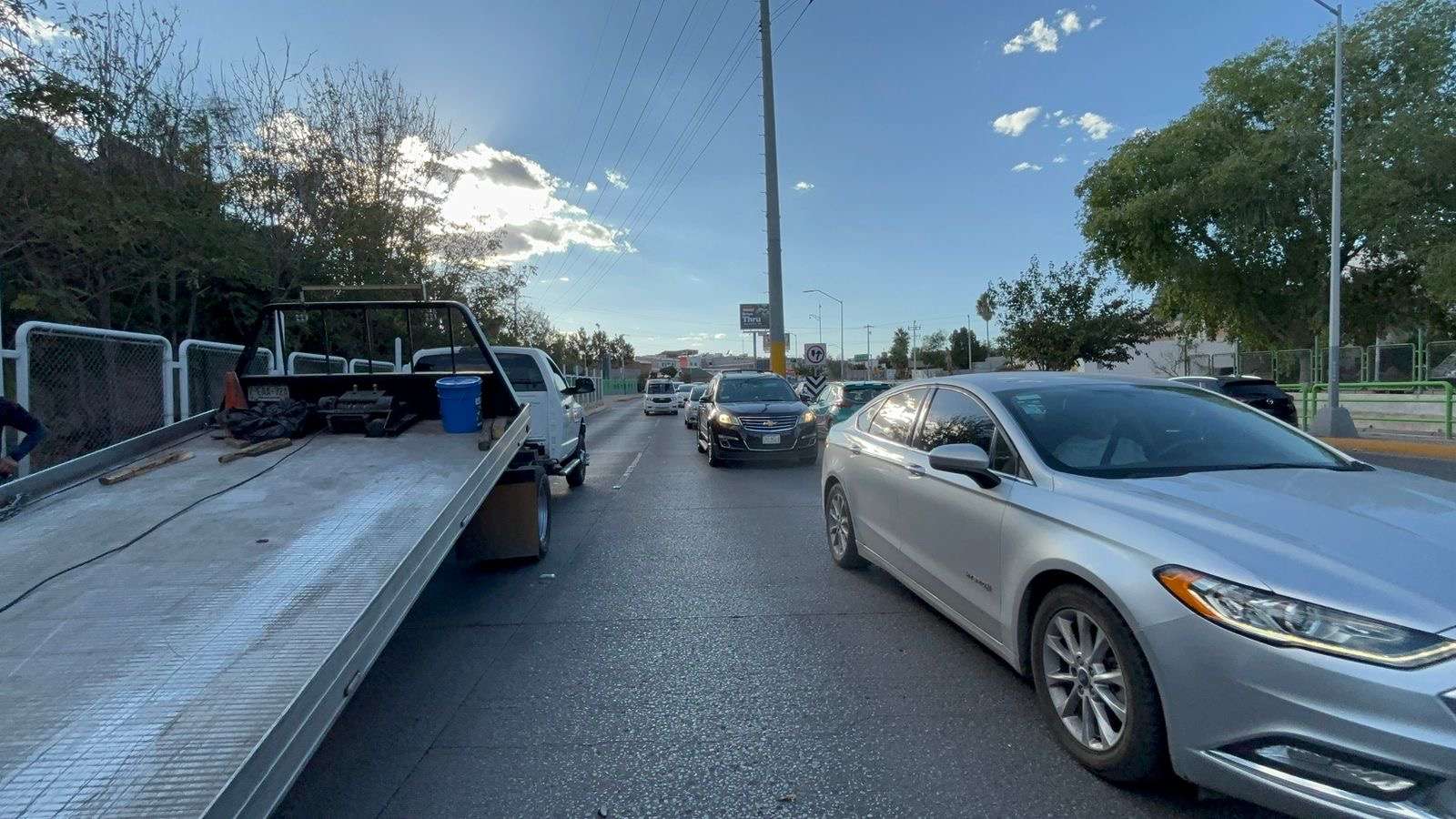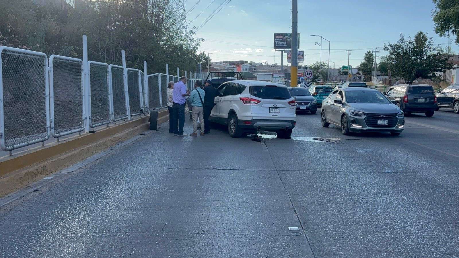 Chihuahua.– Un choque entre una pick up Ford Ranger y una Ford Escape en la avenida Cantera, justo frente al Parque Extremo, generó un fuerte congestionamiento vial durante la hora pico.