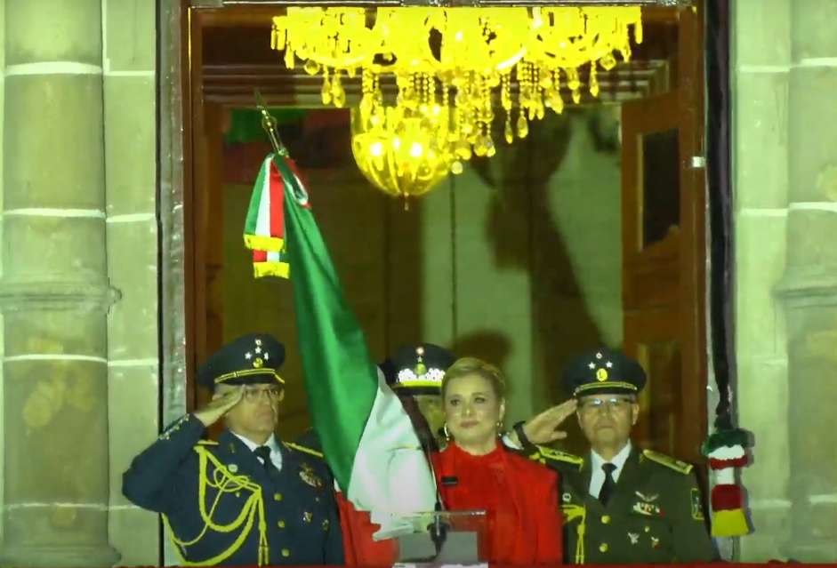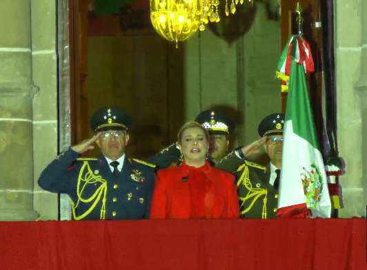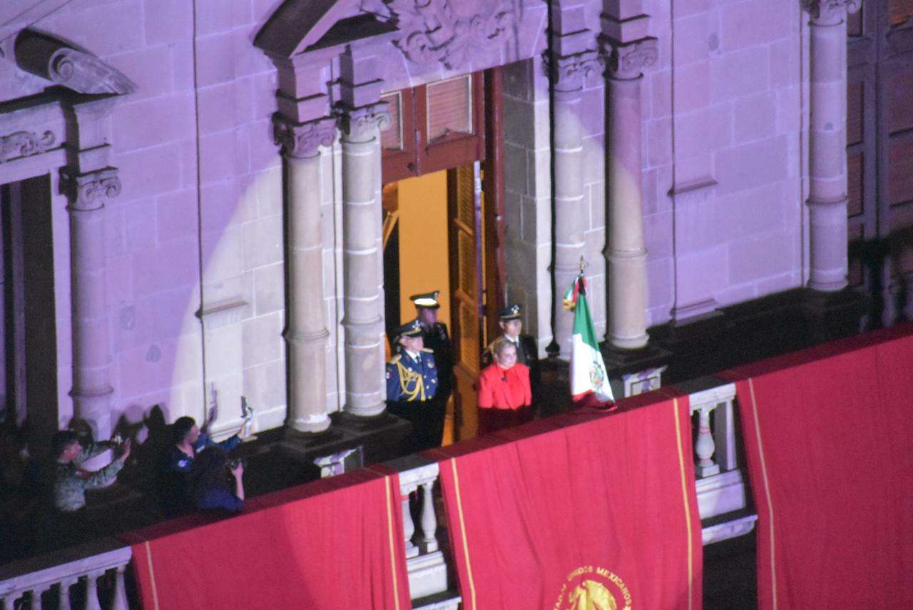 Desde el balcón al grito de Viva Hidalgo, Viva Allende, Viva Morelos, Viva Josefa Ortiz de Domínguez, Vivan los héroes que nos dieron patria y libertad, realizó el Grito de Independencia e hizo vibrar a los más de 40 mil asistentes que se encontraban en la Plaza del Ángel.