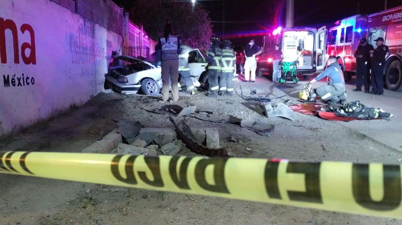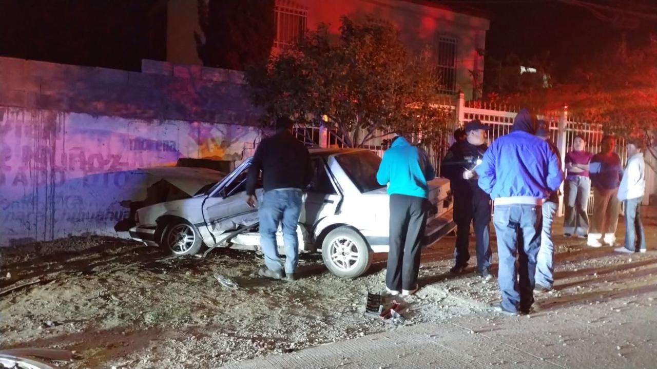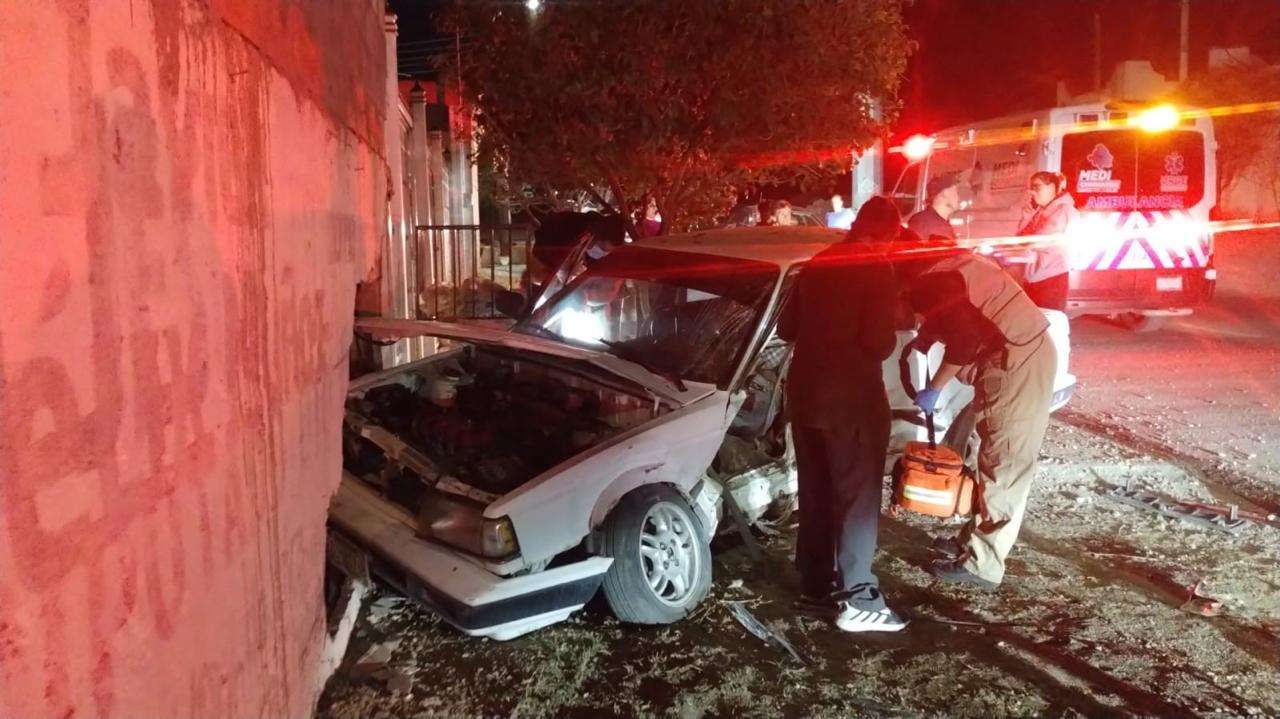 Luego del fuerte impacto, la unidad fue proyectada al menos 10 metros luego de lo cual, el Tsuru terminó impactándose contra la barda de un domicilio.