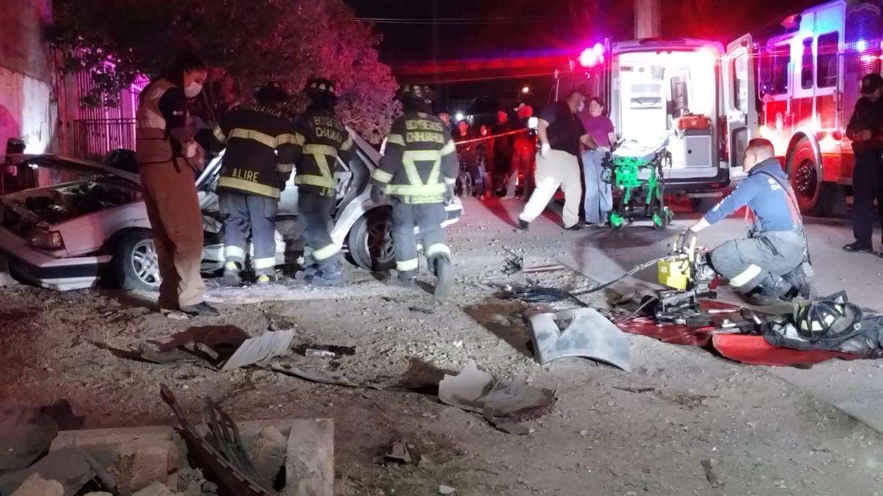 Chihuahua.- El conductor de un vehículo compacto quedó atrapado en su interior luego de chocar en dos ocasiones.