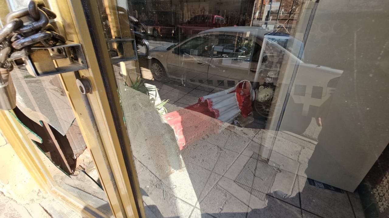 Al arribar al lugar, los agentes observaron que el vidrio de la puerta principal se encontraba quebrado, y junto a este, una figura de yeso de gran tamaño.