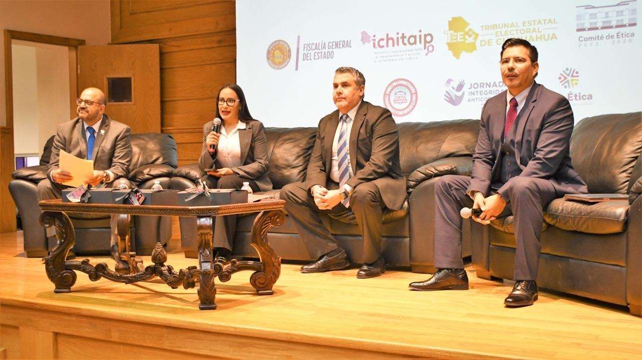 Chihuahua.- El Comité de Ética de la Fiscalía General del Estado en coordinación con el Grupo de Ética del ICHITAIP y el Tribunal Estatal Electoral, organizó el conversatorio denominado, “Combate a la Corrupción, ¿Realidad o Simulación?”.