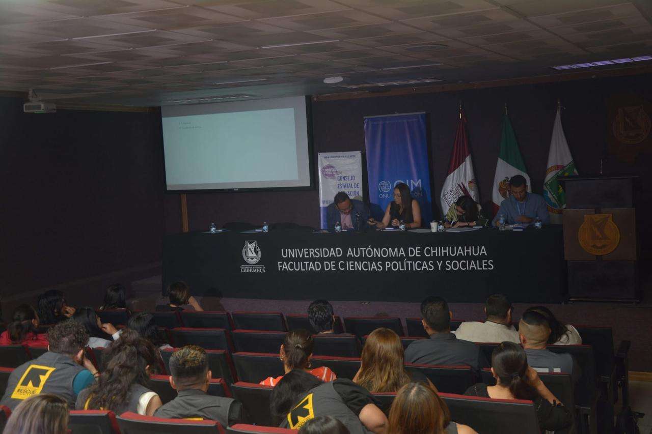 Chihuahua.- La Facultad de Ciencias Políticas y Sociales de la Universidad Autónoma de Chihuahua llevó a cabo la “Jornada de Sensibilización en Materia de Trata de Personas”, esto en coordinación con el Consejo Estatal de Población (COESPO) y la Organización Internacional para las Migraciones (OIM).