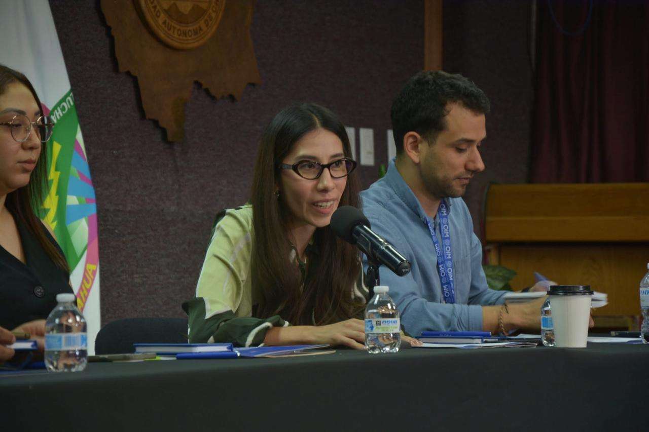 Ante esto se contó con la participación de la Dra. Martha Aurelia Dena Ornelas de la UACH, con la conferencia "La migración como negocio: paralelismos e intersecciones entre el tráfico y la trata de personas en la frontera Juárez- El Paso". Luego, la Fiscalía de la Mujer, a través de la Lic. Cynthia Mendoza, con la conferencia "Marco normativo y buenas prácticas desde el Estado de Chihuahua, en atención a la trata de personas".