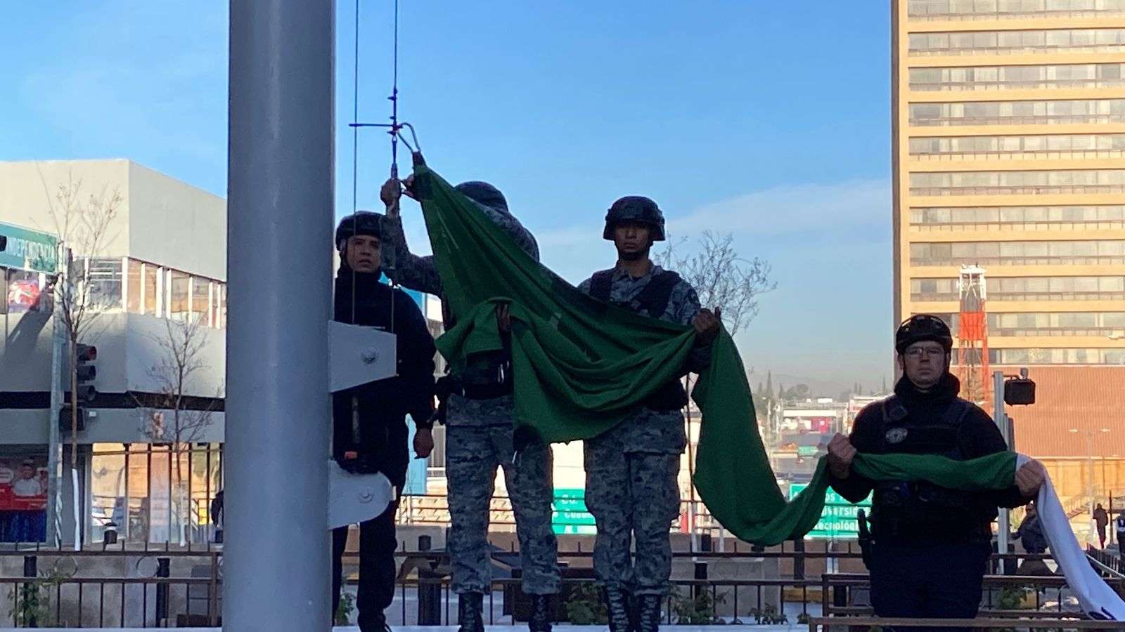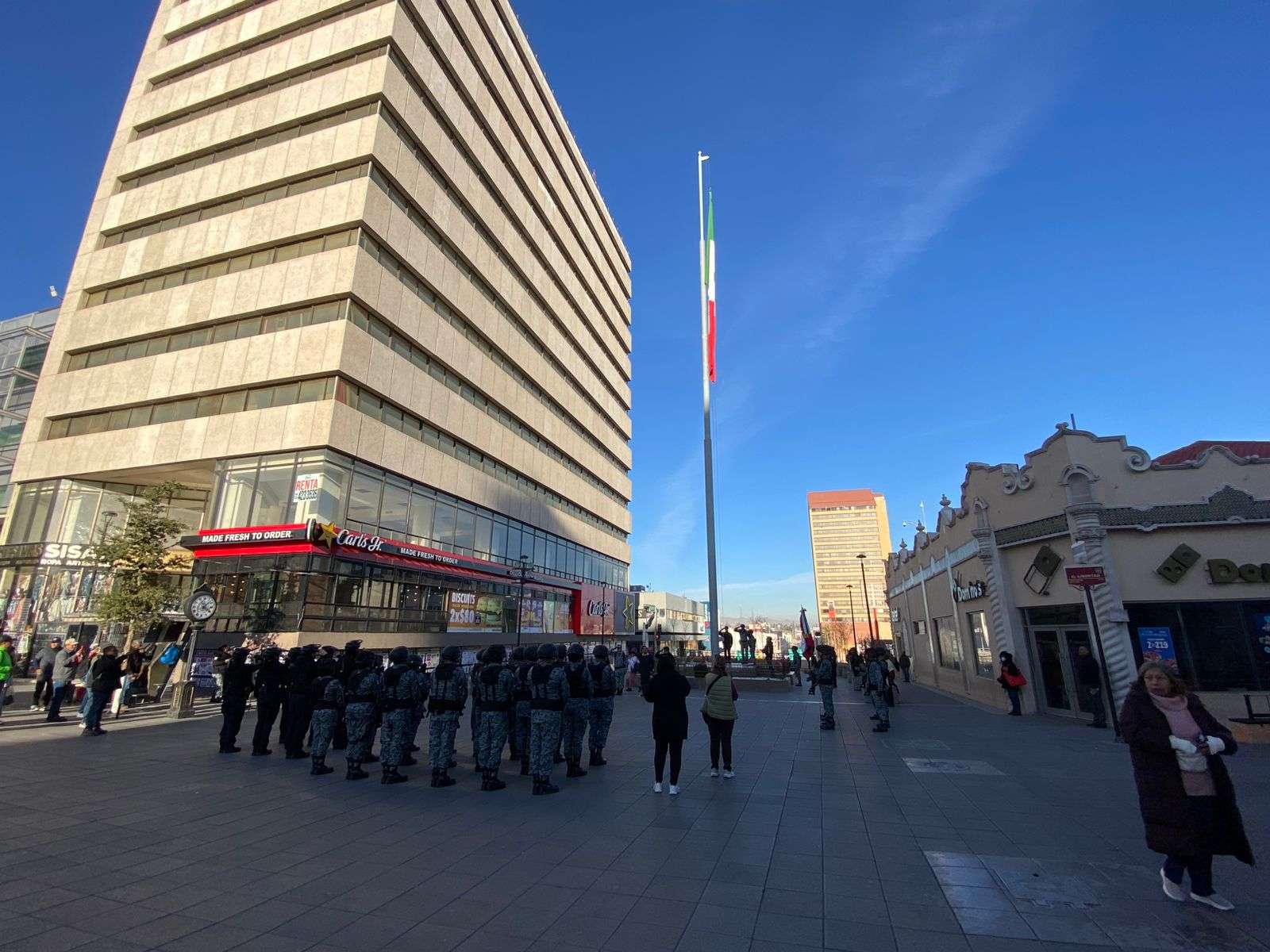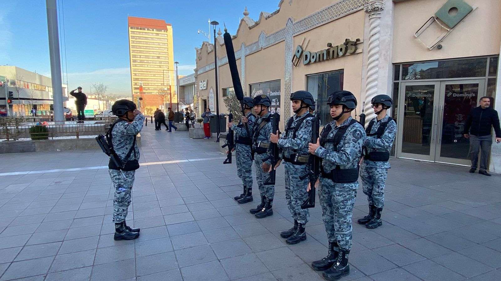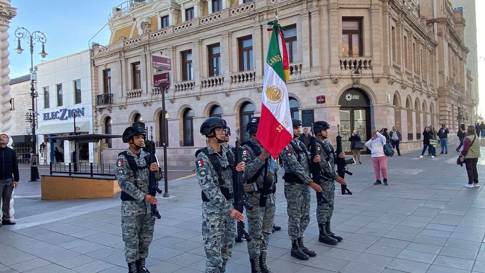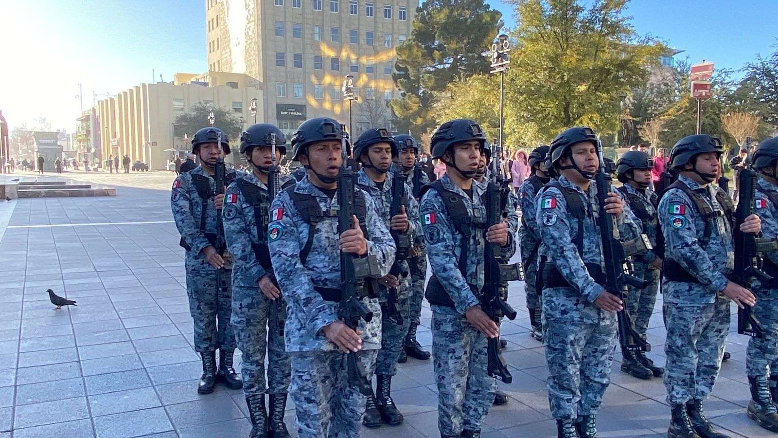 Asimismo, después de un mes de no llevar a cabo este acto protocolario, los elementos de la Guardia Nacional y del Grupo Beta de la Policía Municipal reanudaron este evento.
