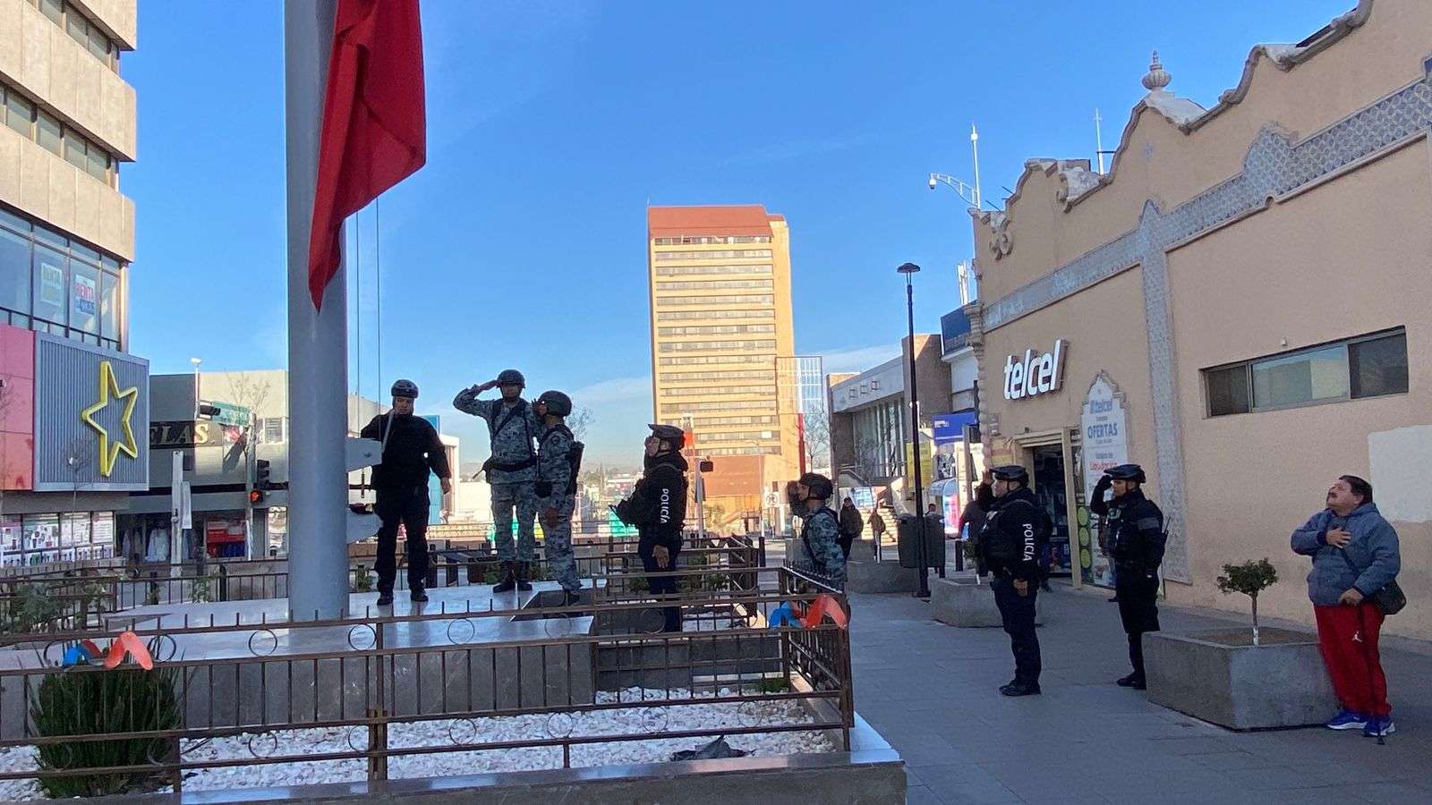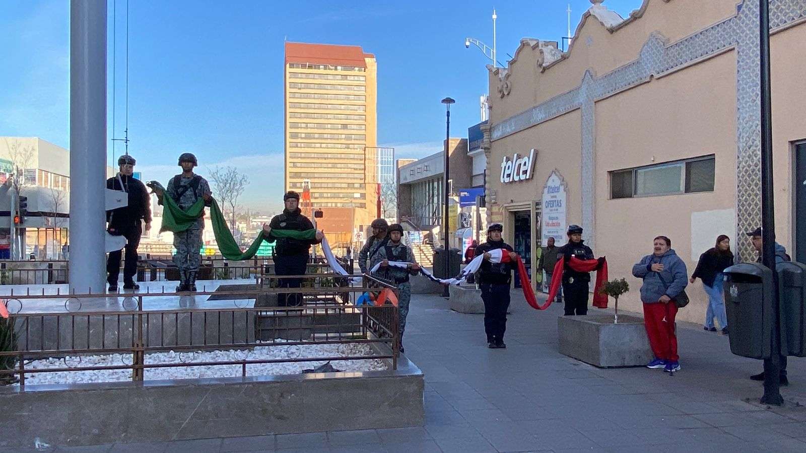Durante el acto protocolario se entonó el Himno Nacional Mexicano, con el cual se realizó el izamiento del lábaro patrio. Al término, los participantes rompieron filas y se retiraron de la plaza, mientras que personas que transitaban por el lugar también rindieron honores.