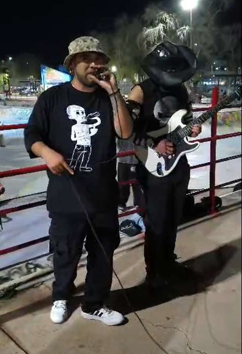 Ataviados en estrambóticas túnicas aderezadas por miles de puntos y máscaras de papel maché, este grupo –en pleno desarrollo- pareciera estar destinado a lograr un espacio en el firmamento de la música no-comercial. Notoriamente influenciados por los Lizzard Wizzard , algo de The Residents y en cierta medida por una etapa en particular de un gigante llamado Frank Zappa, esta banda –innovadora, rara, hermosa- merece la oportunidad de escucharla con audífonos y sin tener a la mano ese aparato tan nocivo e idiotizante llamado teléfono móvil. Al inició señalé el uso de bajo y guitarra micro tonales. Y eso que es? Se come, se bebe o se fuma? – preguntó Frijol-.