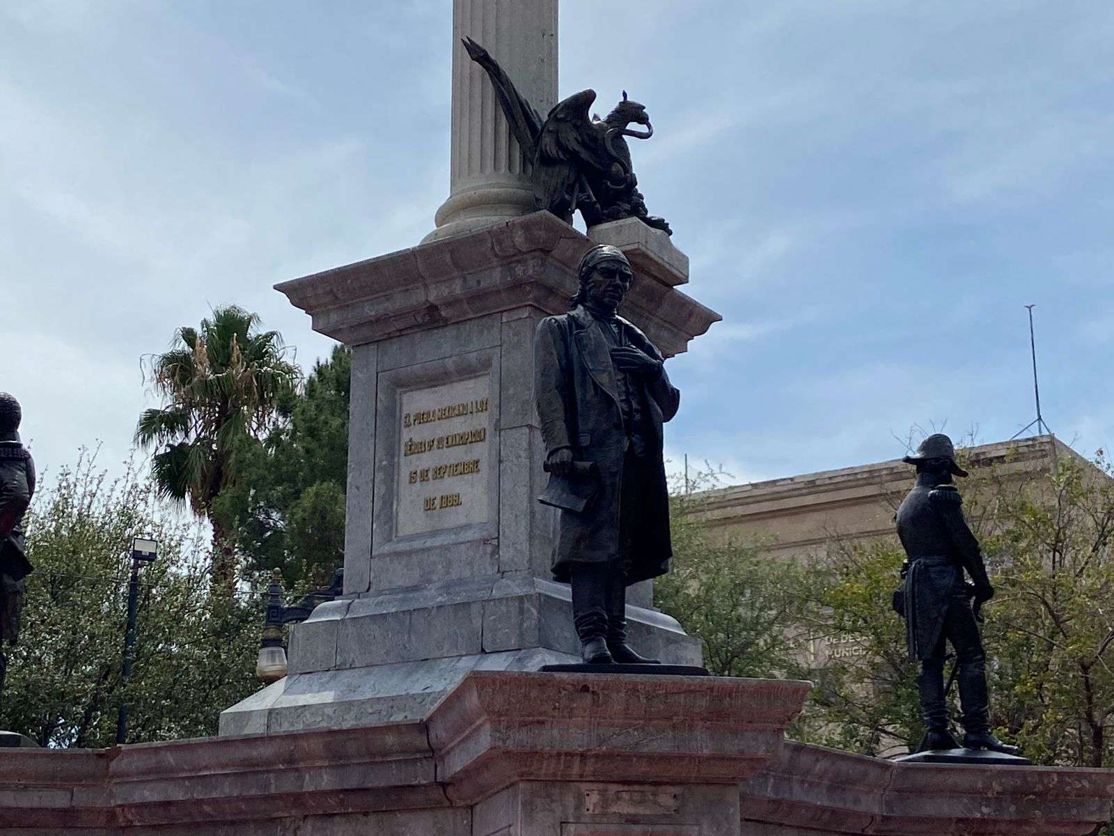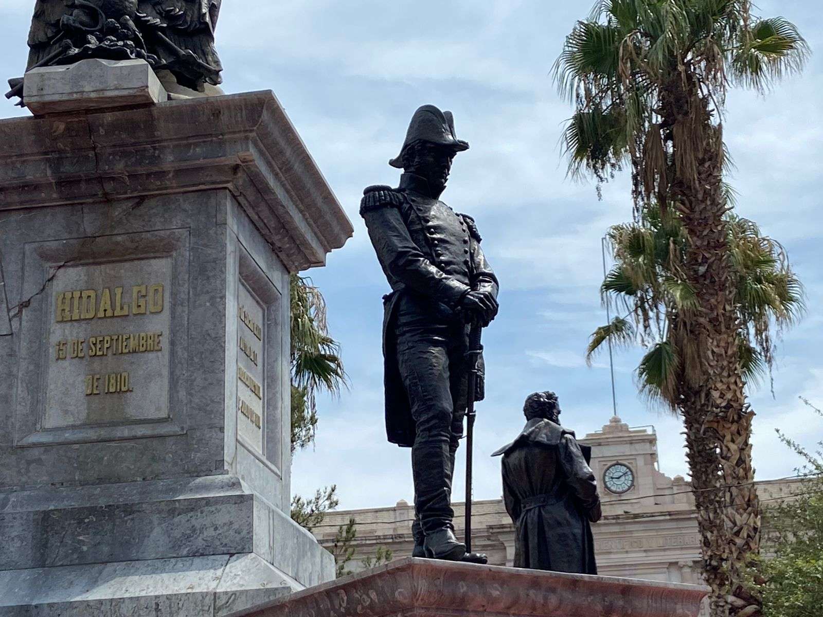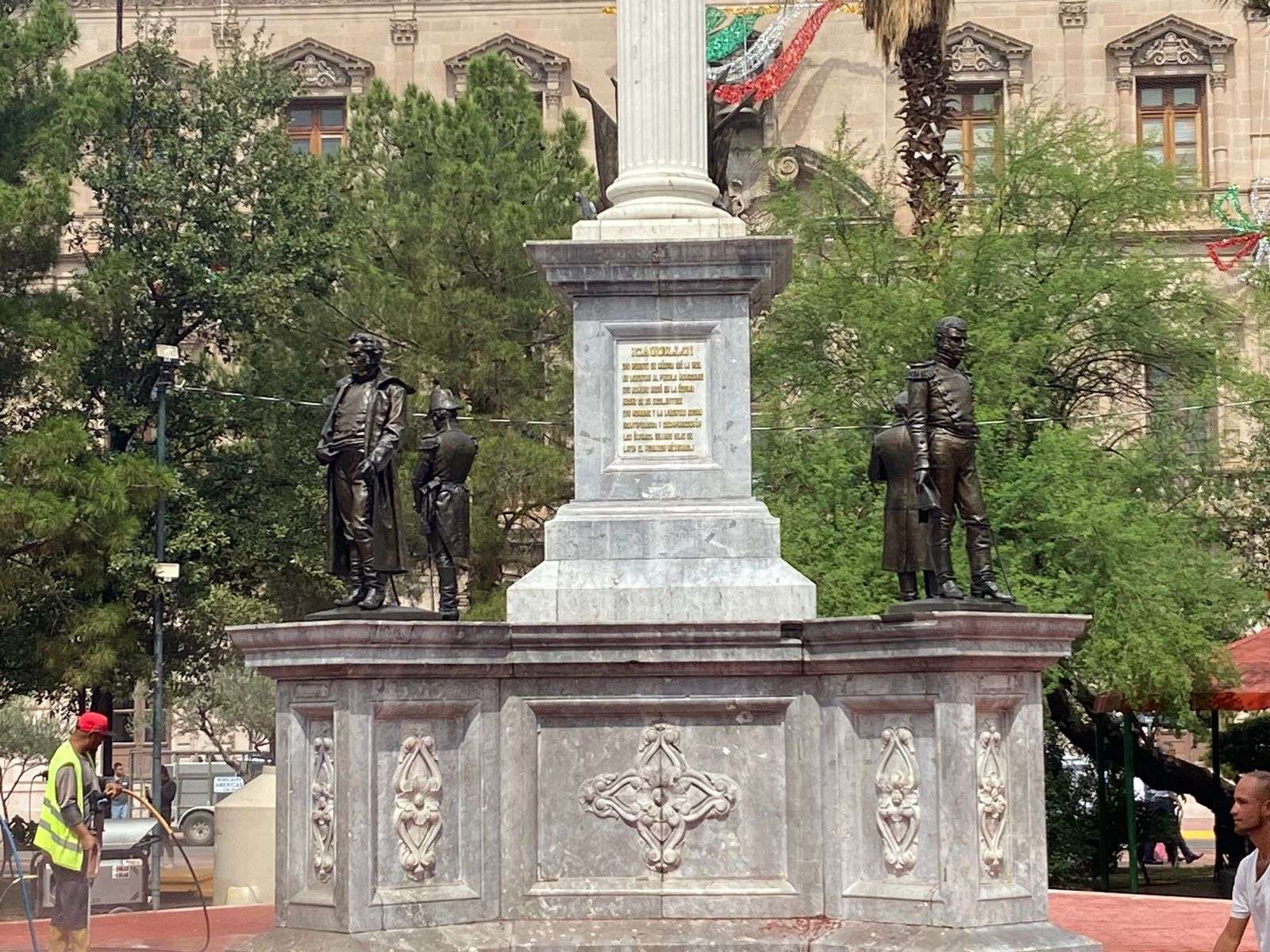Con agua a presión quitaron la tierra y la mugre que estaban en las estatuas de bronce de José María Morelos, Juan Aldama, Vicente Guerrero y Mariano Abasolo héroes que están al pie de la estatua de Don Miguel Hidalgo y Costilla.