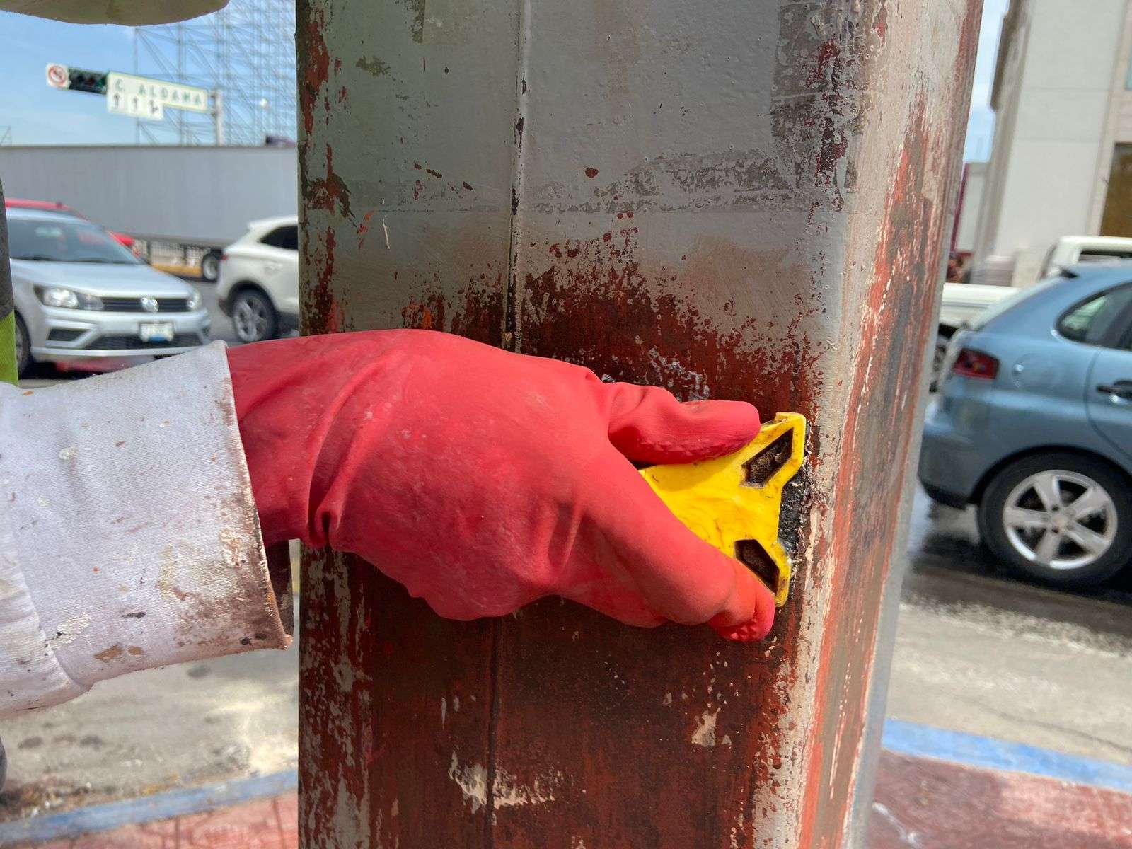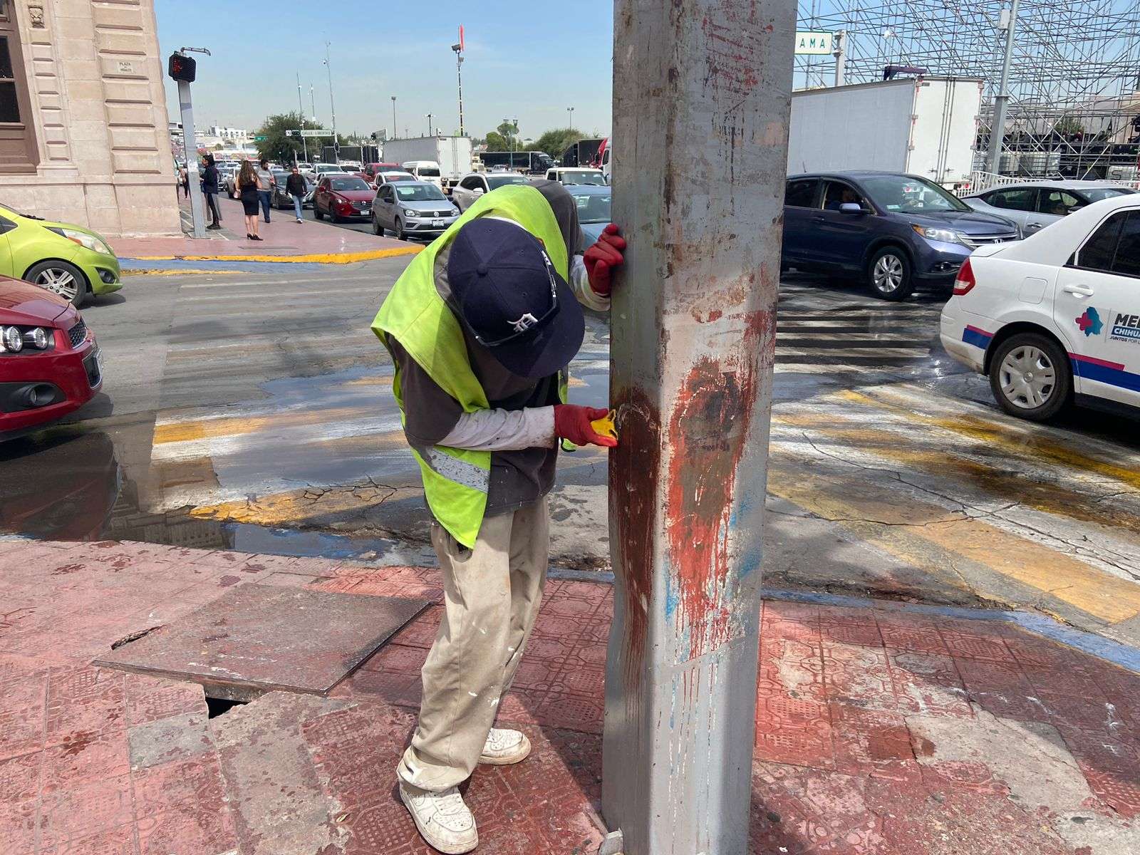Asimismo, también se comenzó con la limpieza de los postes que tenían pintura por lo que un trabajador se encargaba de echarle un líquido a los postes y limpiarlos para quitarles la pintura y los papeles pegados.