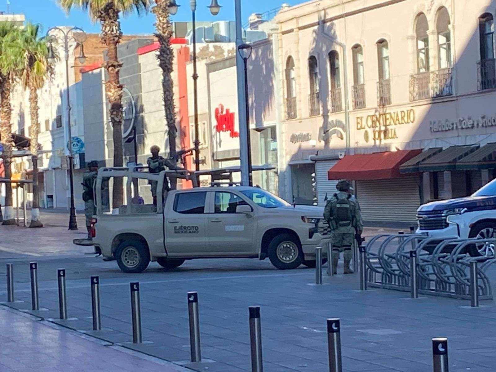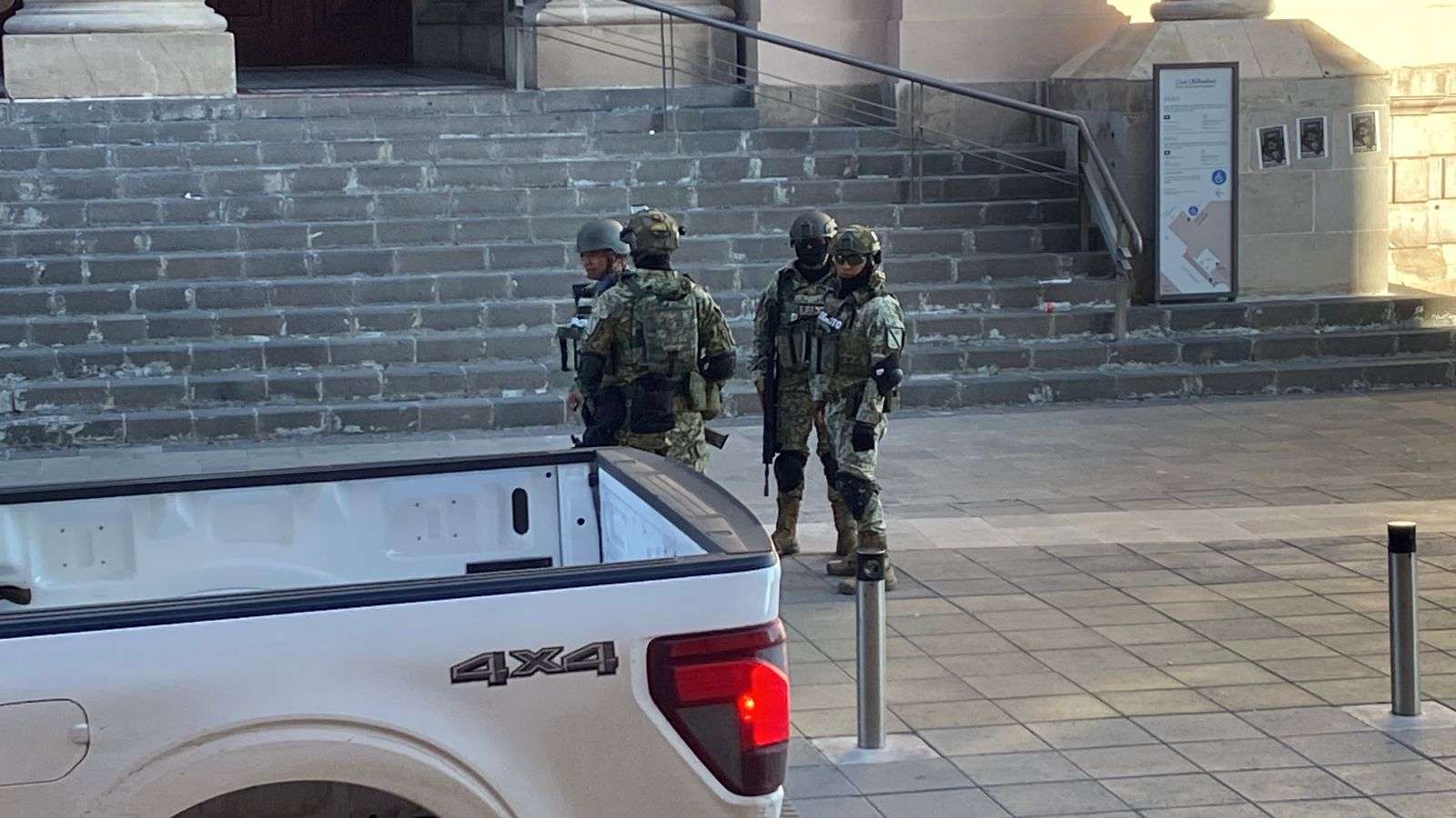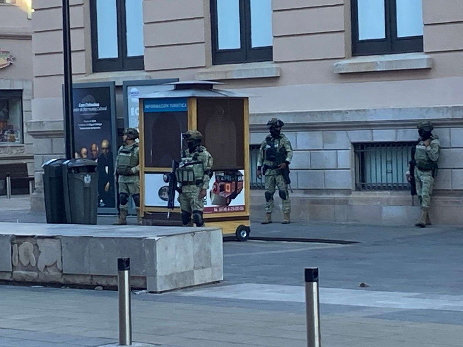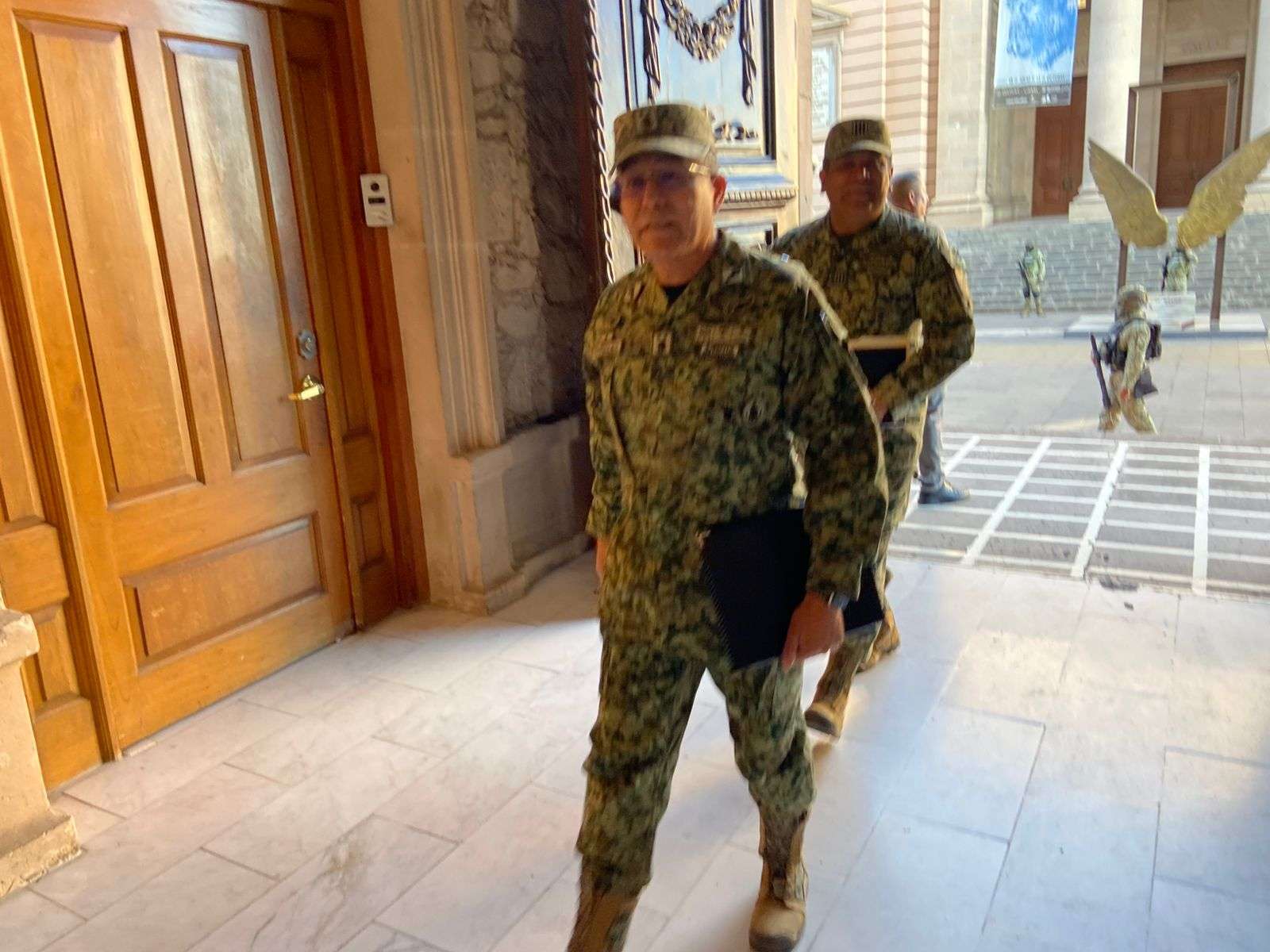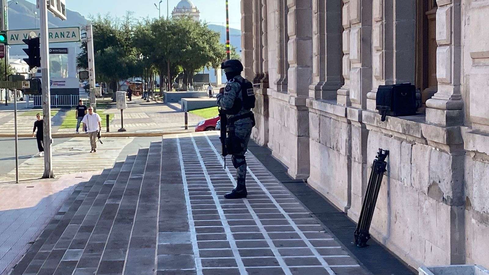 Al Palacio de Gobierno arribaron elementos de la Secretaría de la Defensa Nacional, de la Guardia Nacional, de la Secretaría de Seguridad Pública Estatal y de la Fiscalía General del Estado.