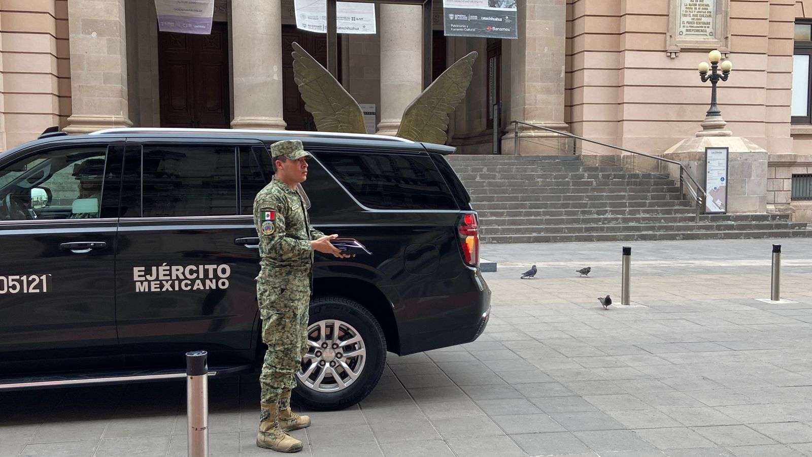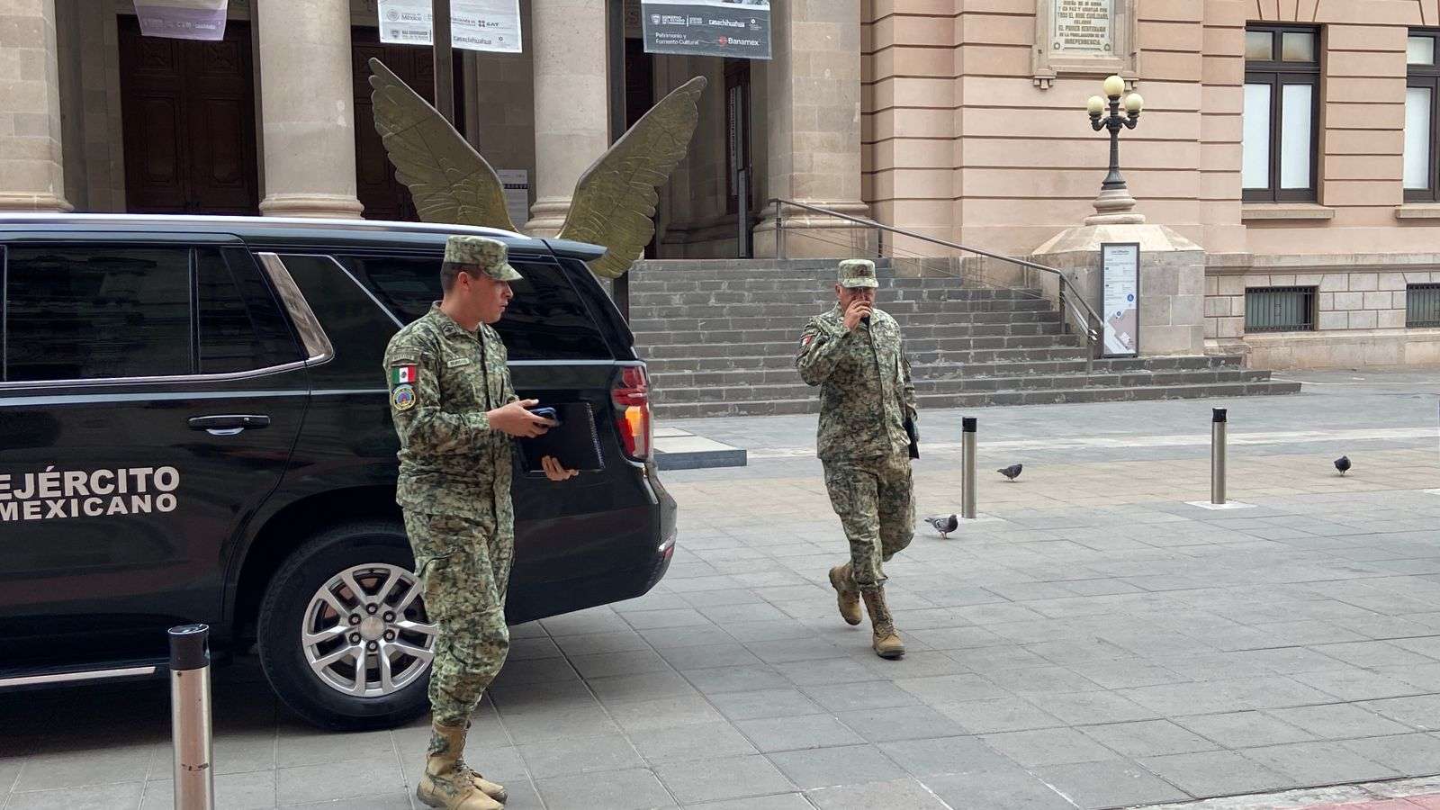 Al palacio de gobierno arribaron elementos de la Secretaria de la Defensa Nacional, de la Guardia Nacional, de la Secretaria de Seguridad Pública Estatal y de la Fiscalía General del Estado.