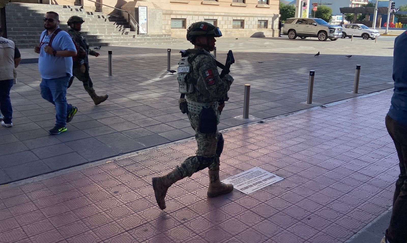 Al palacio de gobierno arribaron elementos de la Secretaria de la Defensa Nacional, de la Guardia Nacional, de la Secretaria de Seguridad Pública Estatal y de la Fiscalía General del Estado.