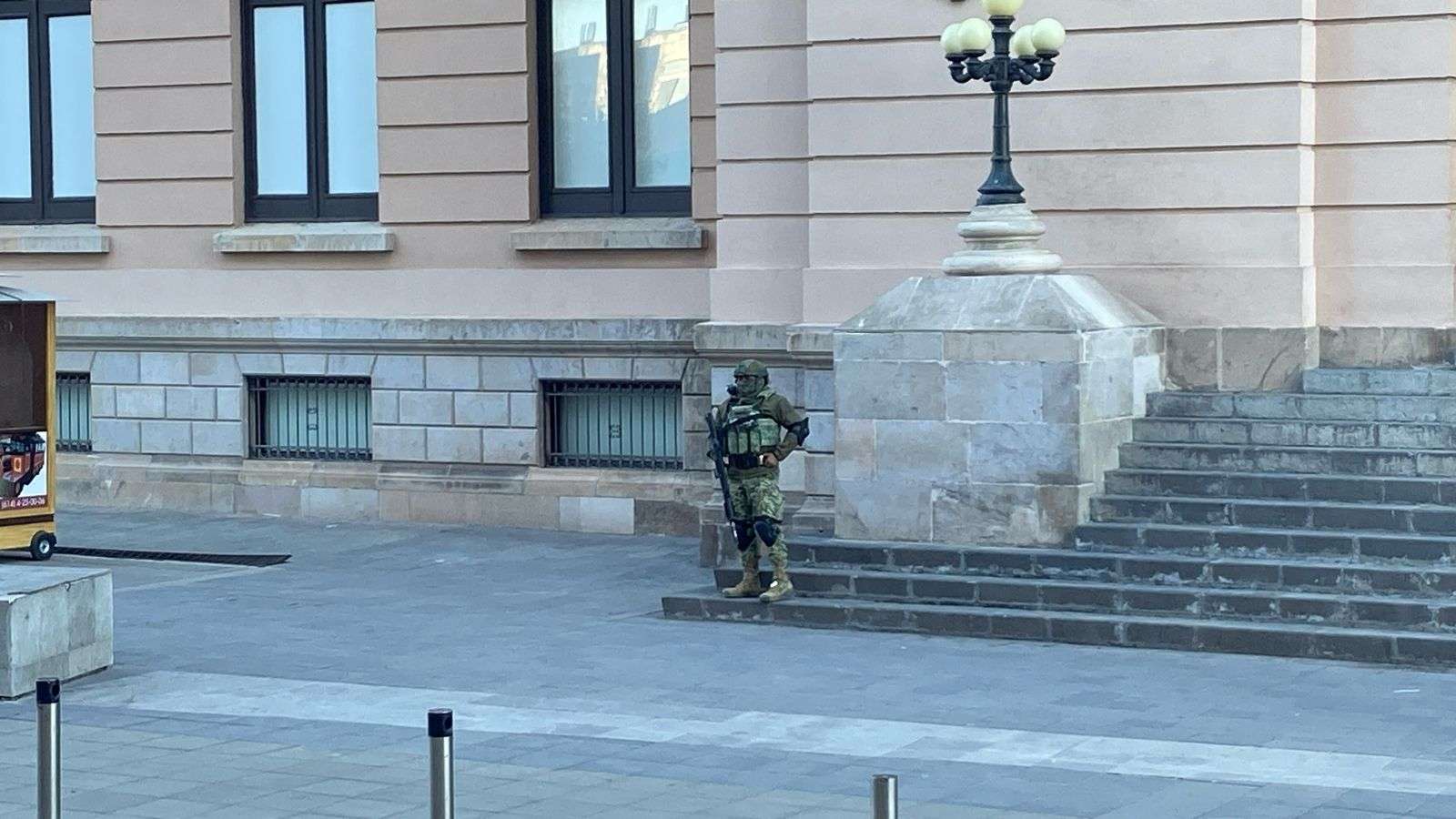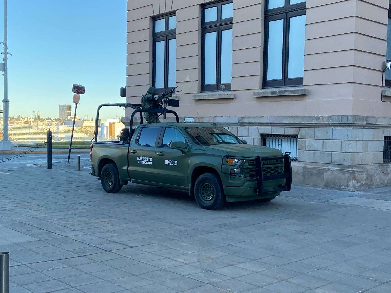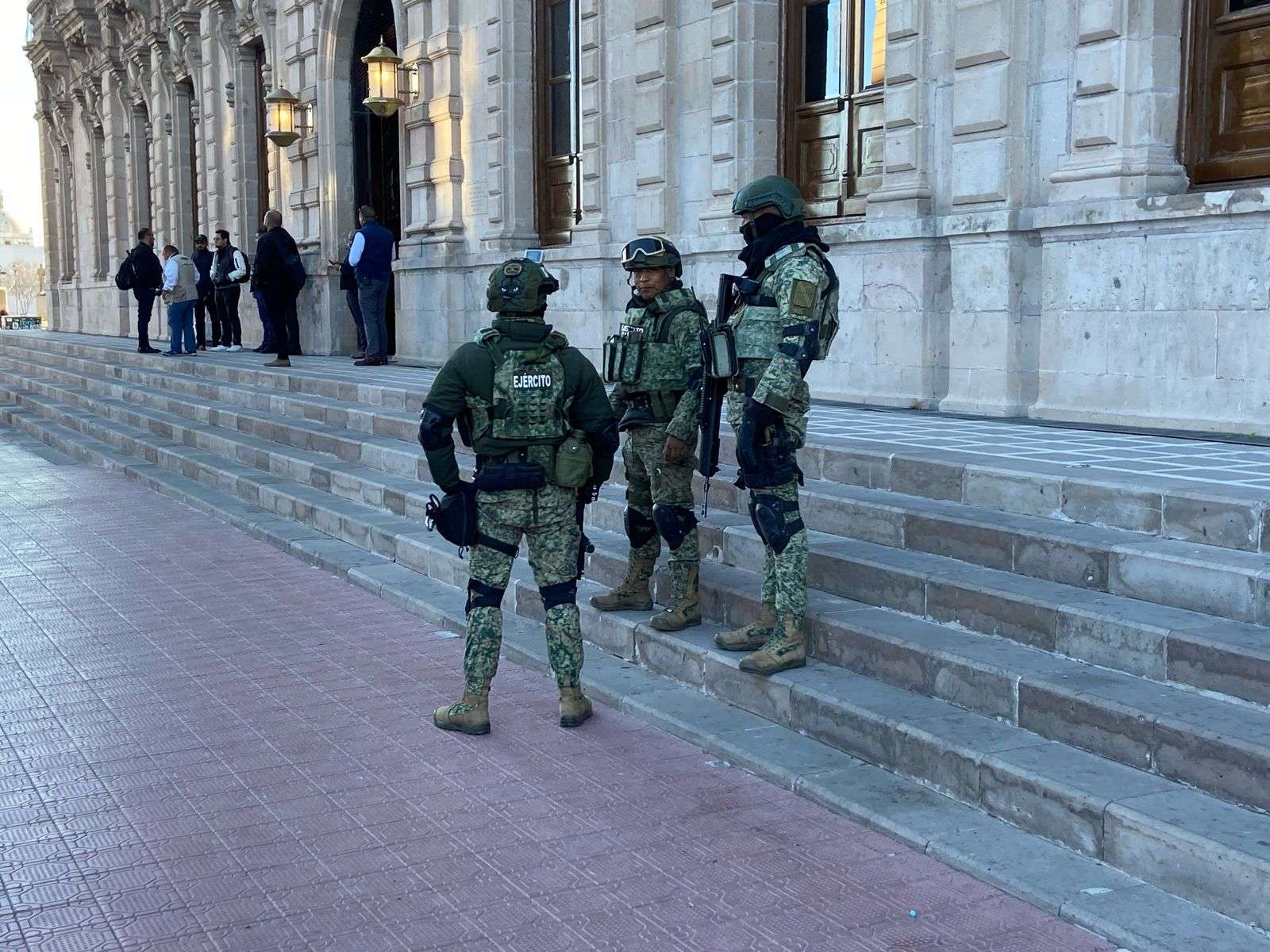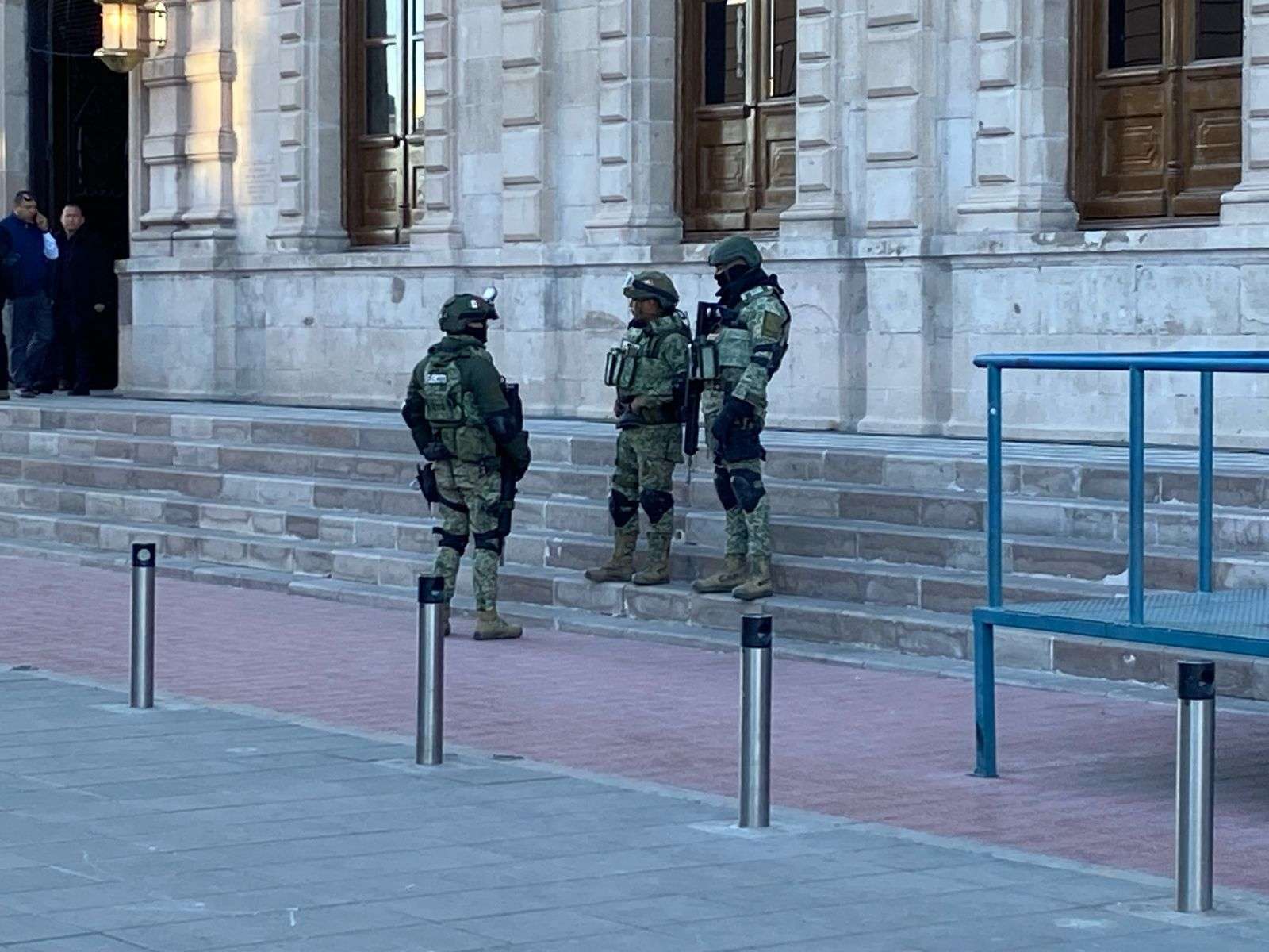 Para garantizar la seguridad en el edificio gubernamental, las entradas y salidas de Palacio de Gobierno fueron resguardadas por elementos de la Guardia Nacional, Sedena y la Fiscalía, mientras se realizaba la mesa de trabajo.