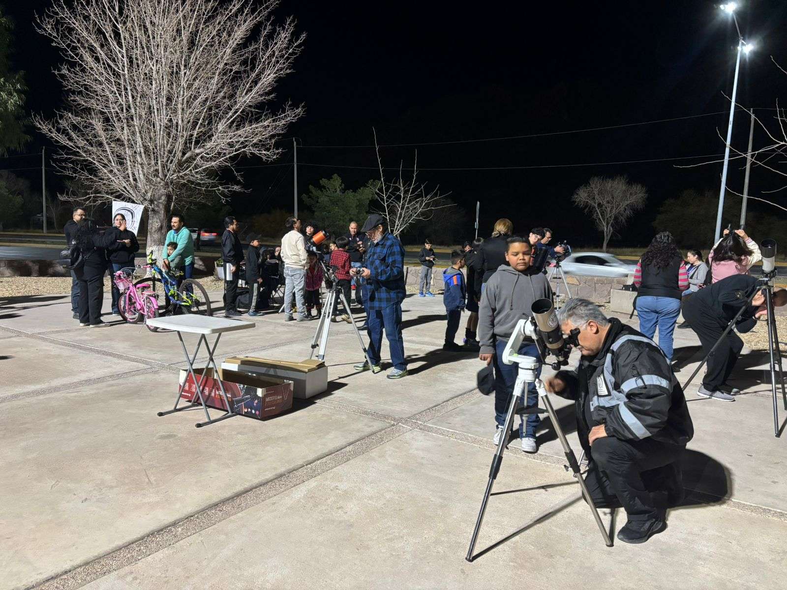Chihuahua. - La Sociedad Astronómica de Chihuahua, realizó este sábado la observación de cuerpos celestes, como son la Luna y Júpiter, en el Polideportivo Luis H. Álvarez, la cual contó con una nutrida asistencia.