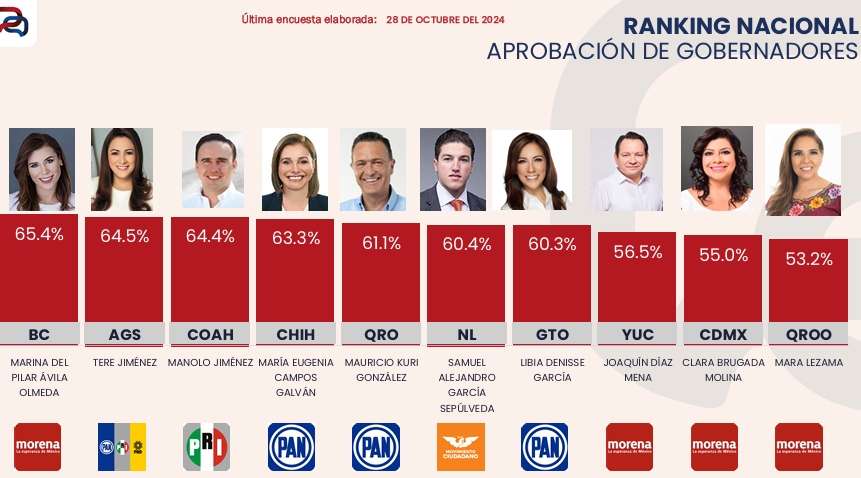 Este respaldo coloca a Campos en el cuarto lugar a nivel nacional, solo por detrás de líderes de Baja California, Aguascalientes y Coahuila.