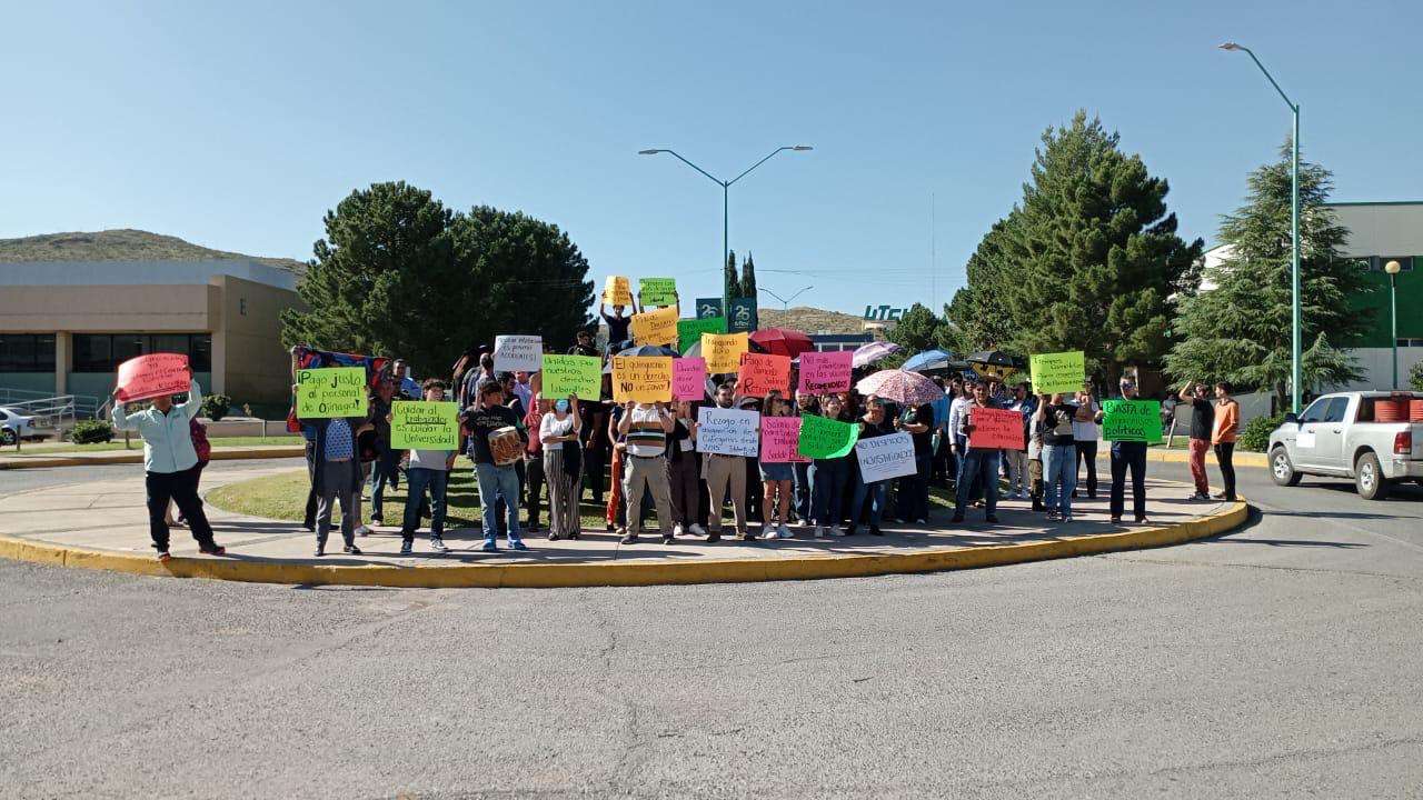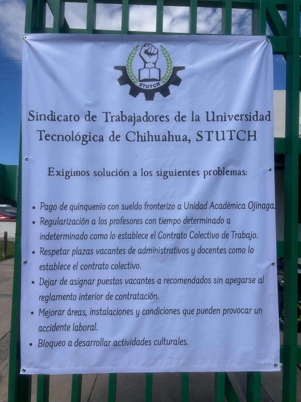 Chihuahua.- El Sindicato de Trabajadores de la Universidad Tecnológica de Chihuahua (STUTCH) se manifestó para exigir a la administración universitaria la solución inmediata a un pliego petitorio que incluye temas salariales, de contratación y condiciones laborales.