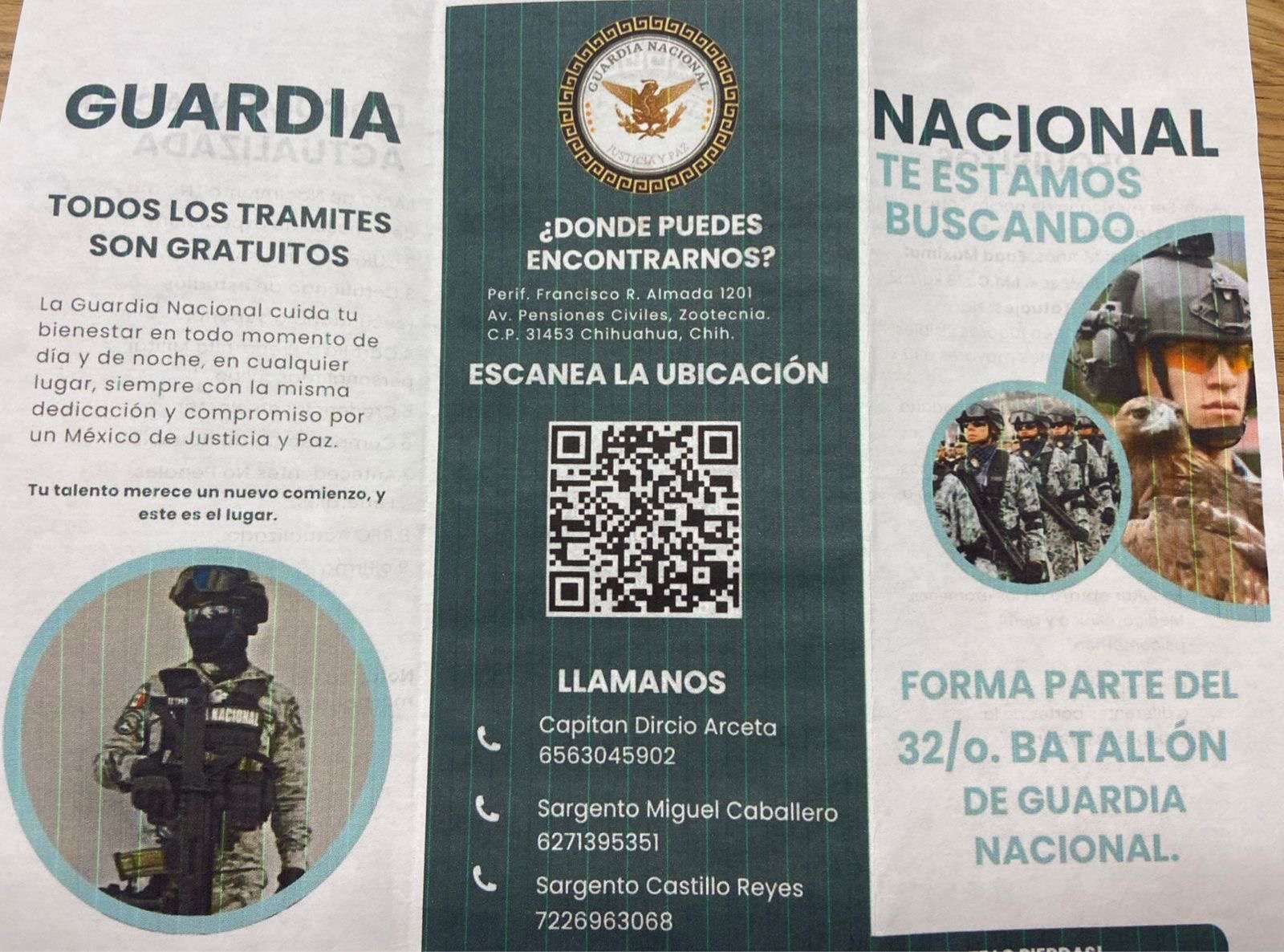 También se pueden comunicar a los teléfonos 656 3045902 con el Capitán Dircio Arceta, con el Sargento Miguel Caballero al 627 1395351 o con el Sargento Castillo Reyes 722 6963068.