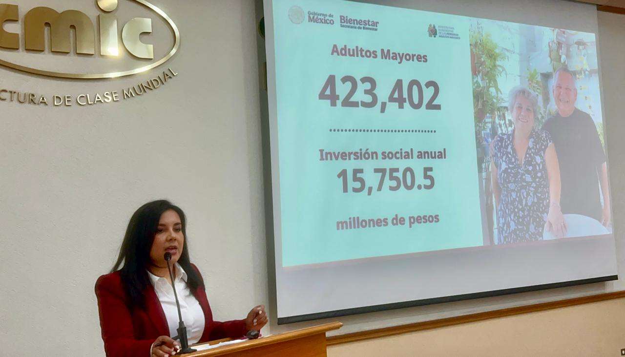 Posteriormente la Delegada de Programas para el Bienestar en Chihuahua, Mayra Chávez Jiménez, informó de los avances de la entrega de apoyos en el estado de Chihuahua, tales como la pensión mujeres bienestar, personas con discapacidad y de adultos mayores, que a la fecha suman más de 423 mil personas lo que representa una inversión de más de 15 millones de pesos.