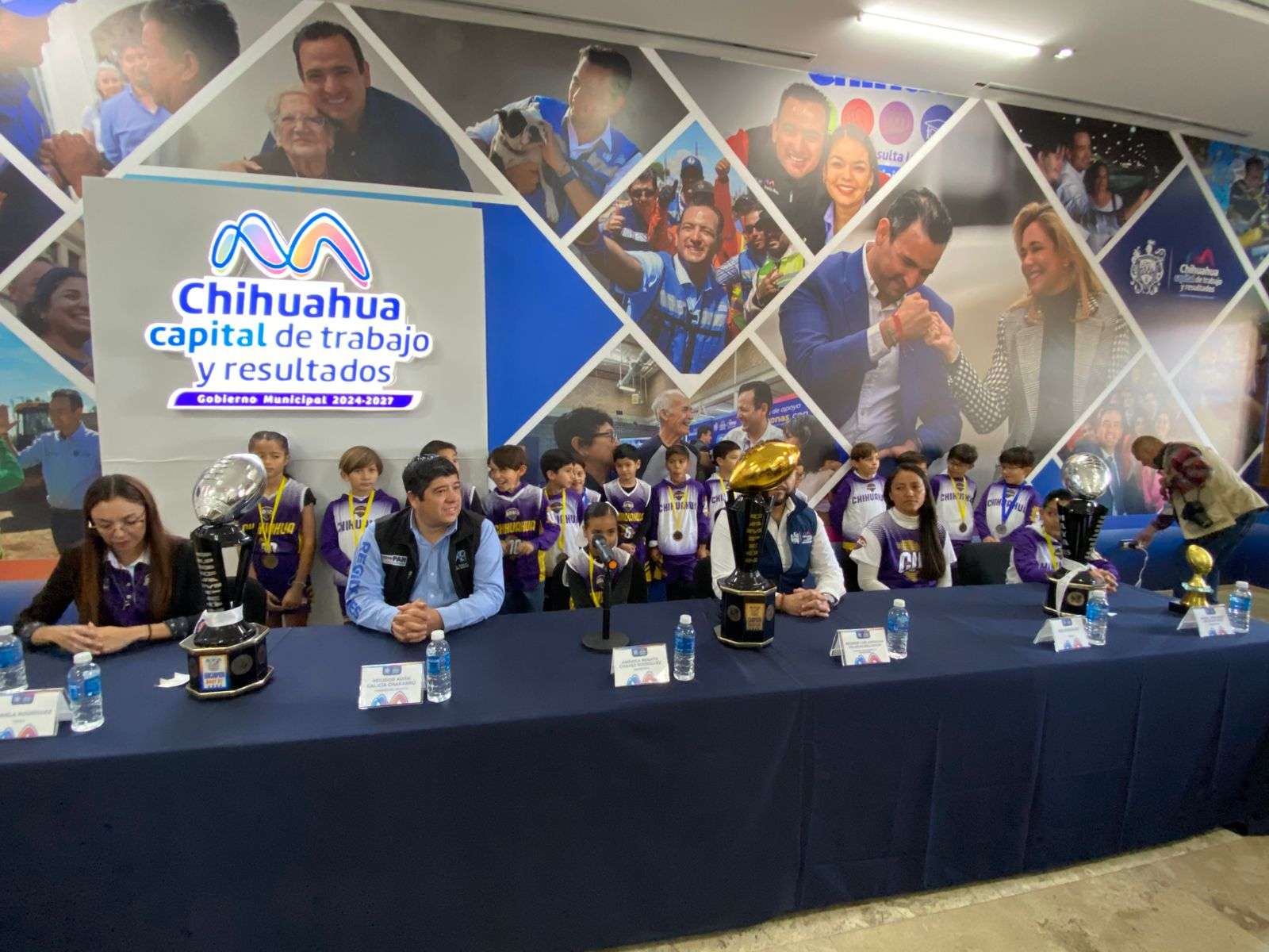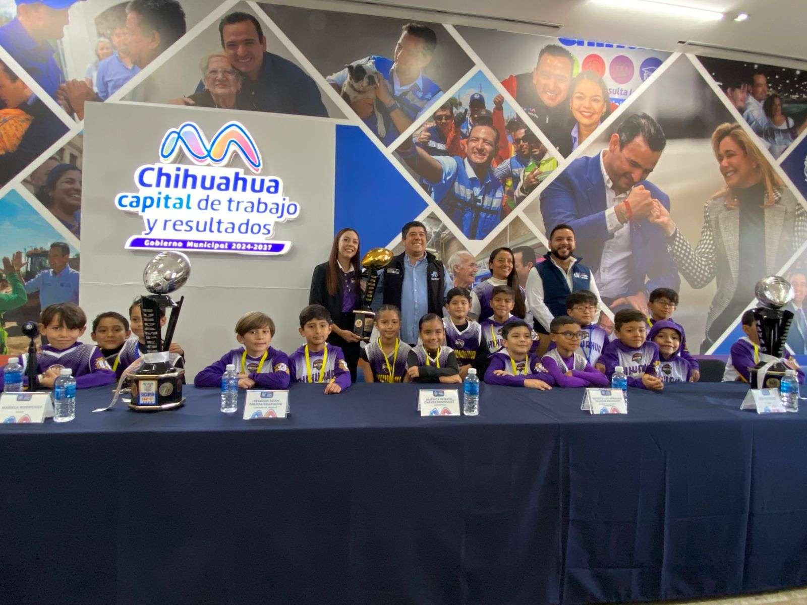 Chihuahua.- En el salón Consistorial de la Presidencia Municipal fueron recibidos los jugadores que participaron en el Cuarto Torneo Nacional Baby Flag Football Cancún Riviera Maya, donde las selecciones U6 y U7 consiguieron un subcampeonato y un bicampeonato.