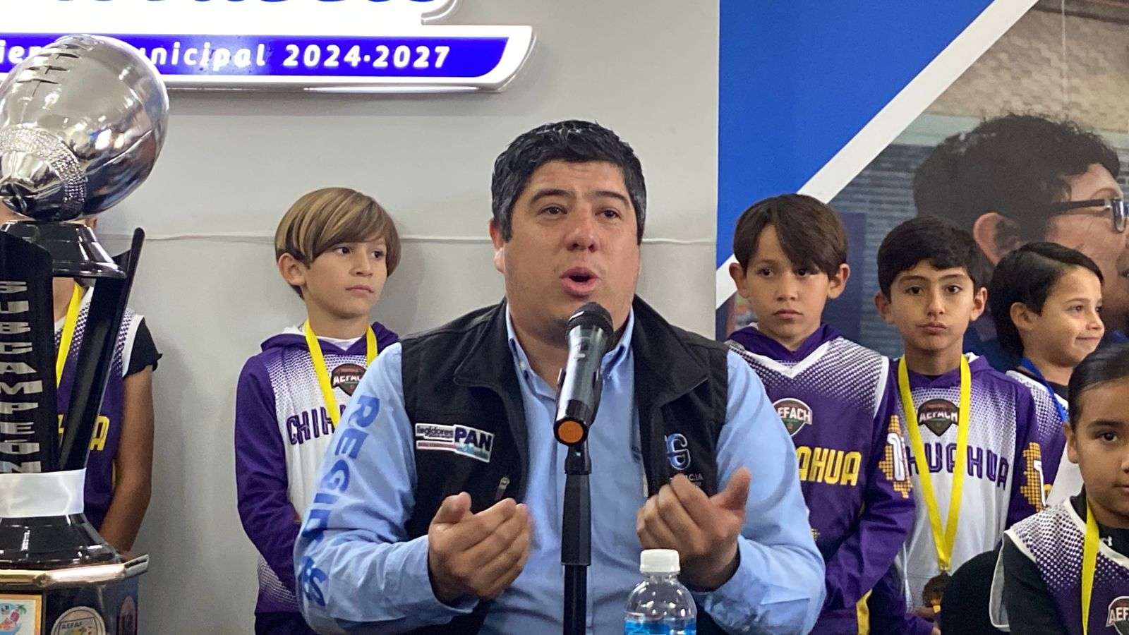 “Nuestro compromiso es promover el deporte y ayudar a las niñas y a los niños a ejercer lo que ellos hacen, y lo hacen muy bien: este deporte tan maravilloso. Y lo más importante es ganar”, señaló el regidor Adán Galicia.