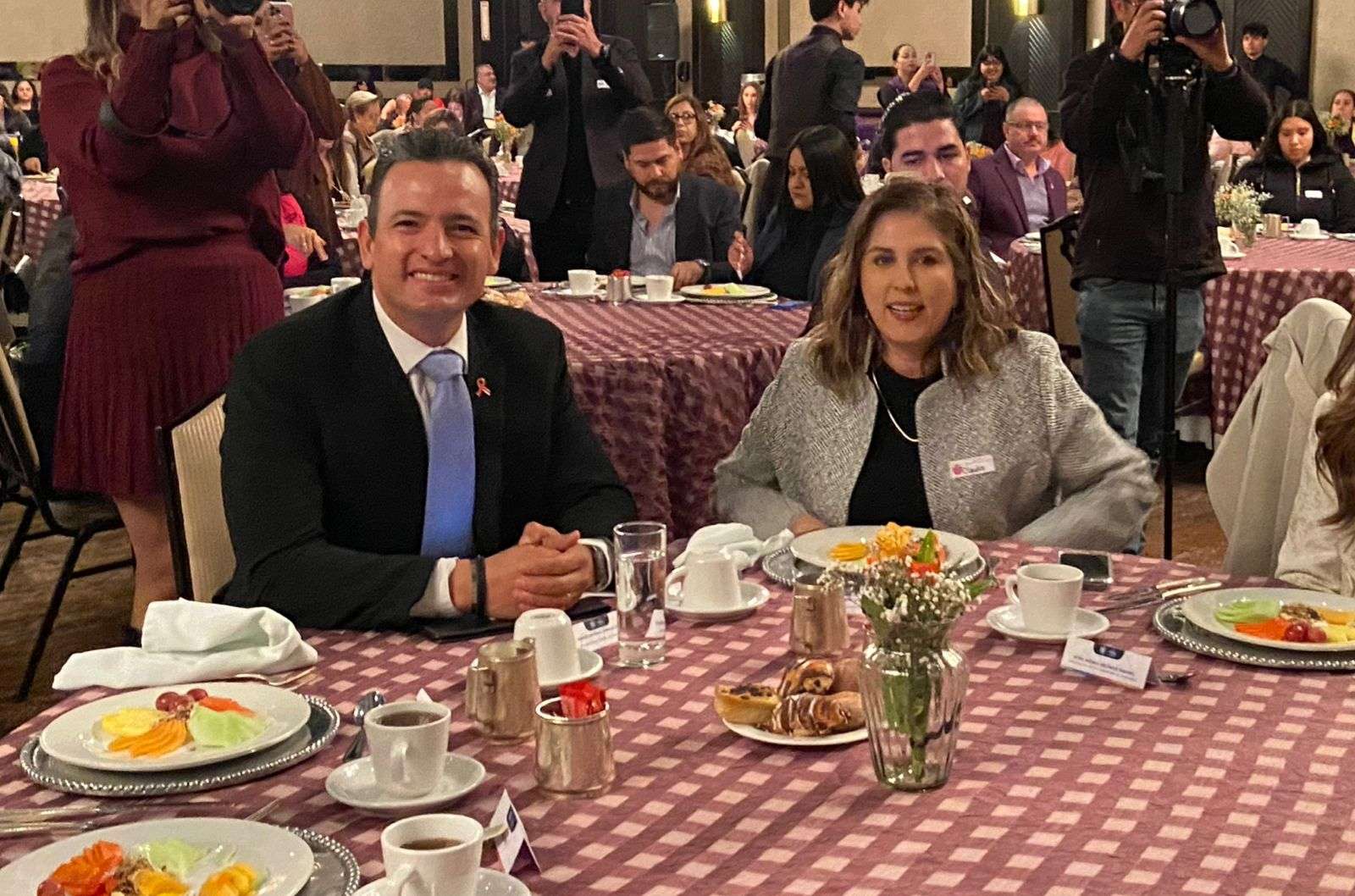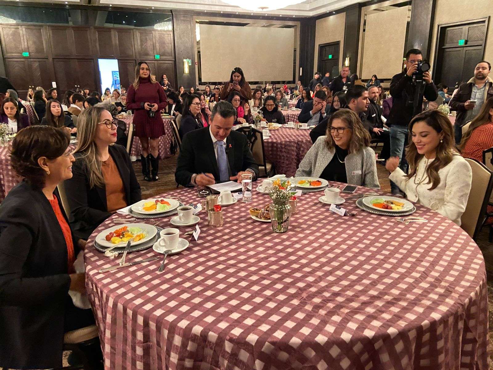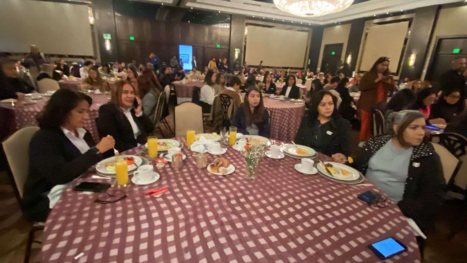 Chihuahua.- En un evento celebrado en el Hotel Sheraton, el Gobierno Municipal y el Instituto Chihuahuense de las Mujeres ofrecieron un desayuno como agradecimiento a más de 200 empresarias y empresarios que apoyan el programa Juntas Podemos Ahorrar.