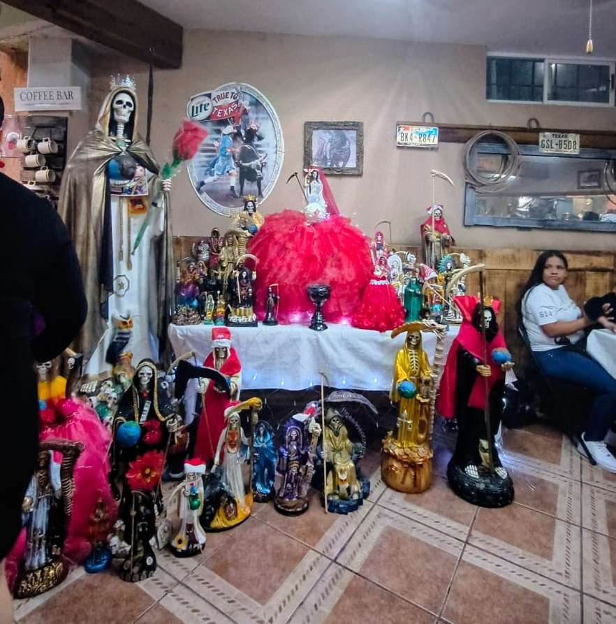 La Santa Muerte, entendida por sus devotos como una entidad protectora y mediadora en asuntos de la vida cotidiana —salud, trabajo, seguridad y justicia—, suele ser celebrada en fechas clave del calendario ritual. Aunque su día central es el 1 de noviembre, en los últimos años se ha observado la incorporación de celebraciones navideñas, particularmente posadas, que reproducen esquemas comunitarios tradicionales del catolicismo popular, como el recorrido colectivo, la música, la oración y el compartir alimentos.