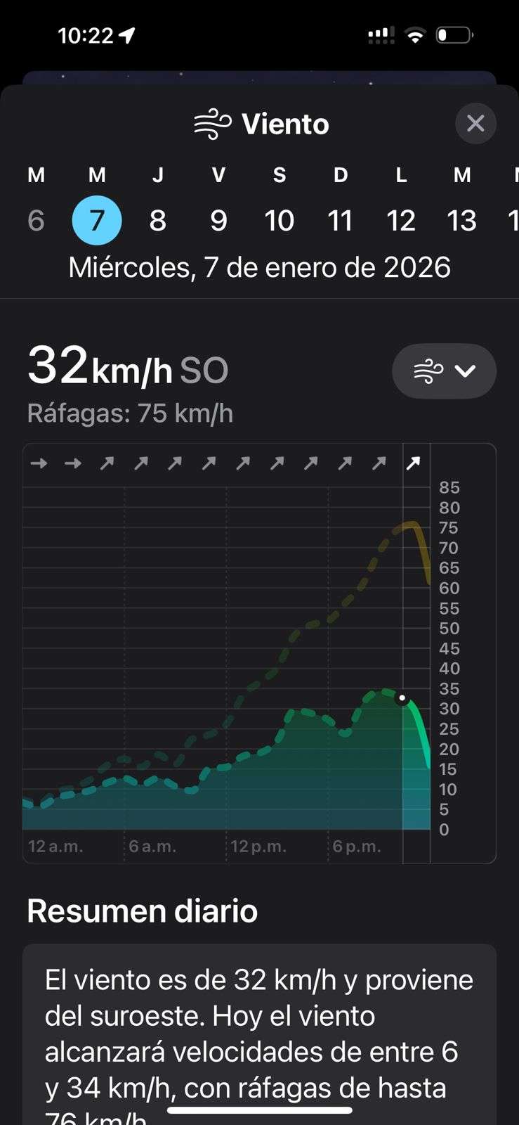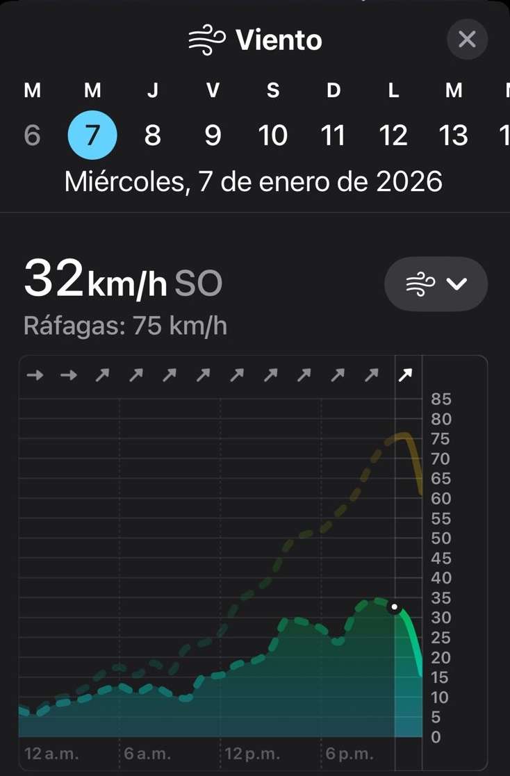 De acuerdo con reportes meteorológicos, durante la noche se registró una velocidad del viento de 35 kilometros por hora con rachas de viento de hasta 75 kilómetros por hora, lo que provocó una sensación térmica considerablemente menor a la temperatura ambiente.