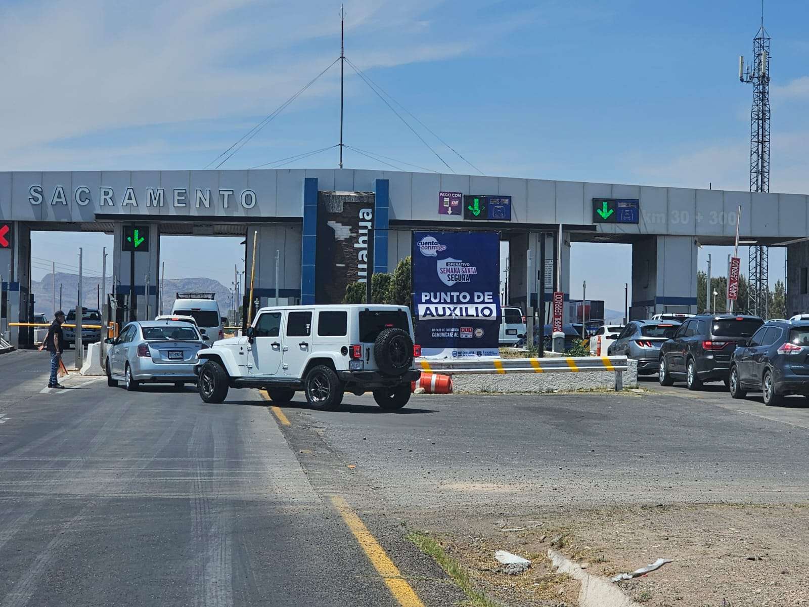Chihuahua.- La afluencia en la caseta Sacramento se ve más nutrida para los capitalinos que decidieron salir para disfrutar de unas largas vacaciones que de entrada a la ciudad.
