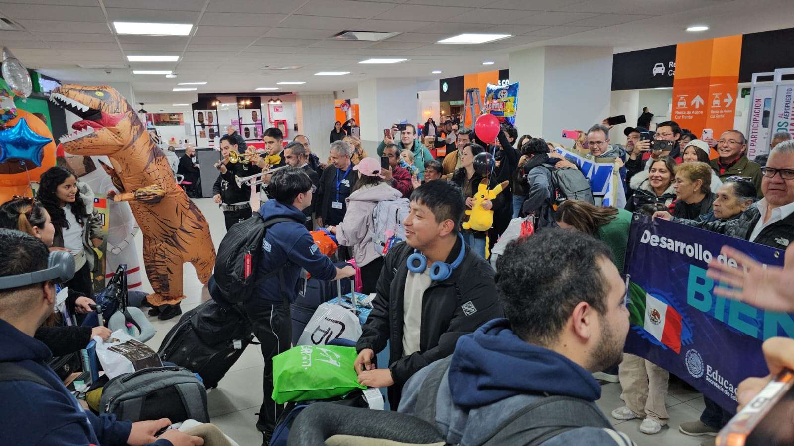 Chihuahua.- Un total de 22 estudiantes de distintas universidades del estado, entre ellos dos de la Universidad Tecnológica de Ciudad Juárez (UTCJ), arribaron al aeropuerto de la capital del estado de Chihuahua luego de concluir una estancia de seis meses en Taiwán, donde se capacitaron en temas de electromovilidad y semiconductores.