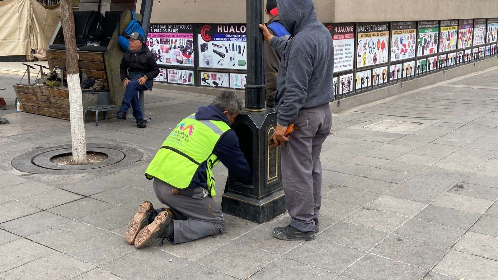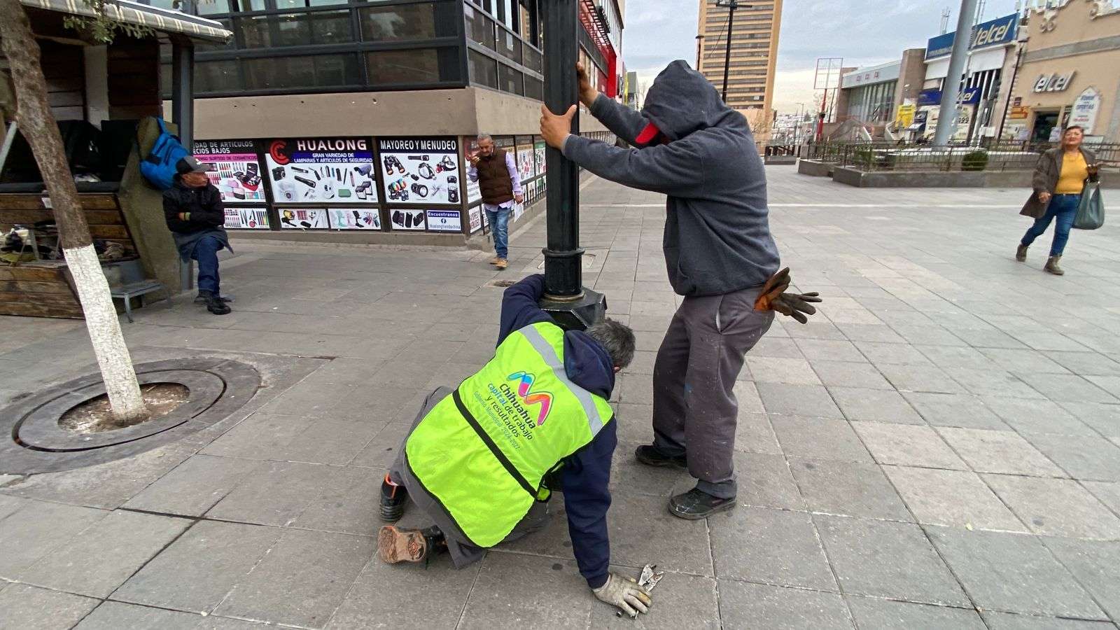 Chihuahua.- Una cuadrilla de trabajadores de Mantenimiento Urbano instaló de nueva cuenta el reloj que el Club Rotario de Chihuahua colocó en Libertad e Independencia.