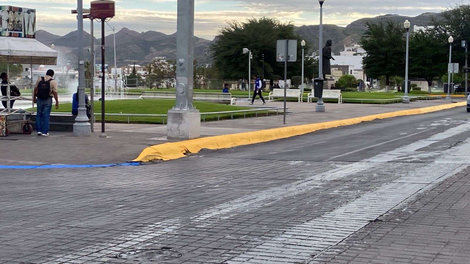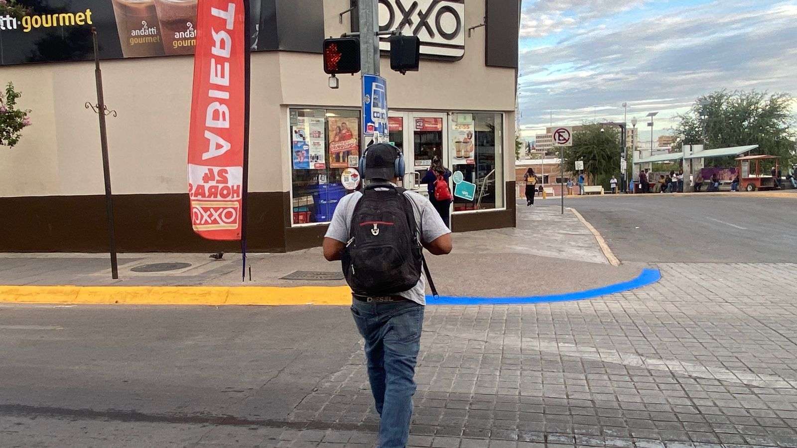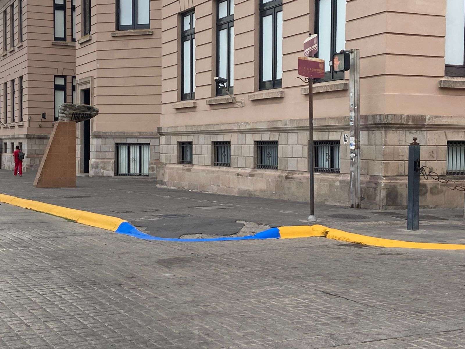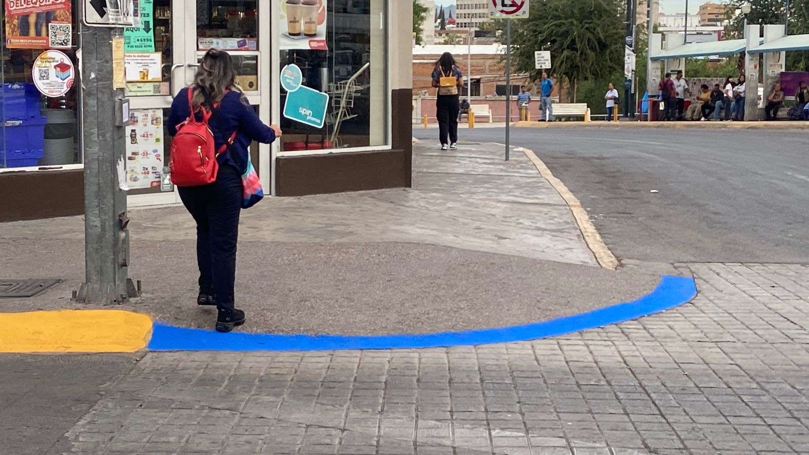 Chihuahua.– Las guarniciones de las banquetas en la colonia Centro de la ciudad amanecieron pintadas como parte de una acción para mejorar la seguridad de los peatones y promover el respeto a los espacios destinados a personas con discapacidad.