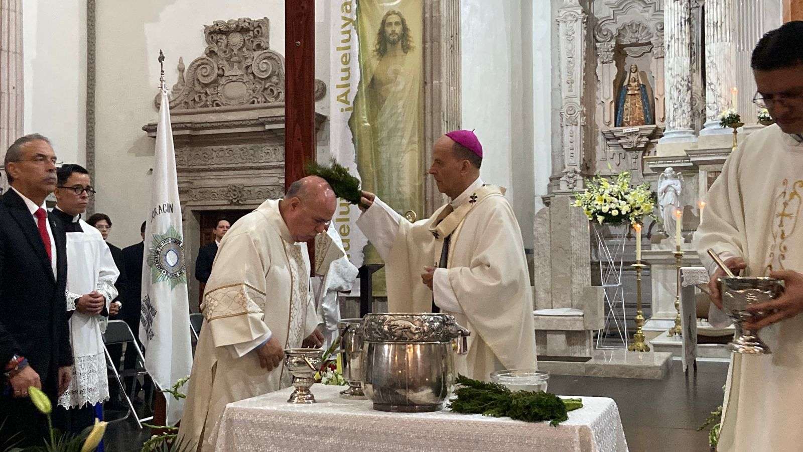 Posteriormente el Arzobispo, realizó la bendición del agua que es el símbolo del bautismo que Jesús implementó cuando Juan el bautista lo bautizo con el espíritu Santo.