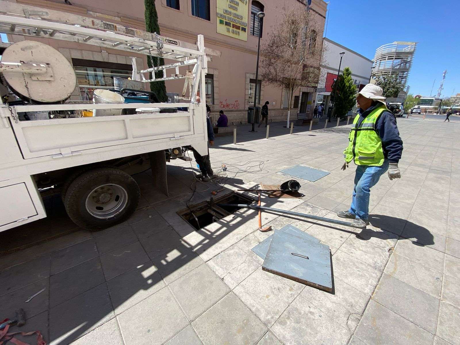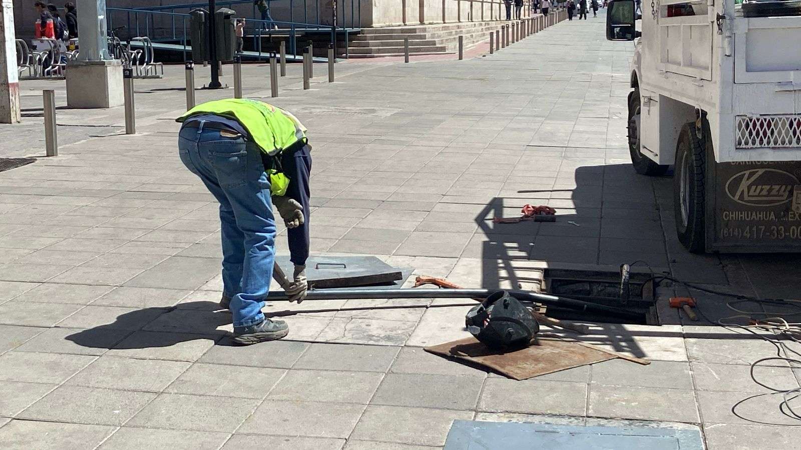 Chihuahua.- Una cuadrilla de trabajadores de Mantenimiento Urbano del municipio realizó trabajos de reparación en una tapa de registro dañada ubicada en las calles Guerrero y Libertad.