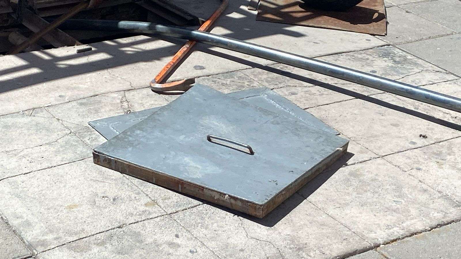 Los operarios retiraron la tapa del registro para reemplazarla y dejarla en buenas condiciones. Para ello, instalaron una base nueva y la soldaron para asegurar que tuviera el soporte adecuado.