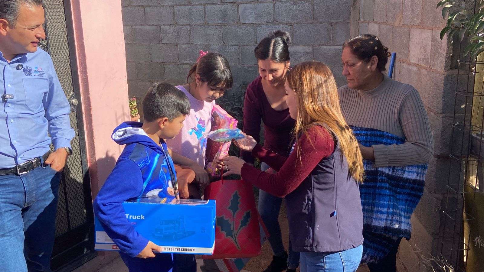 Las cenas entregadas incluyeron pollo, guarniciones y refresco, mientras que las familias con niñas y niños también recibieron juguetes, cobijas y prendas de abrigo.