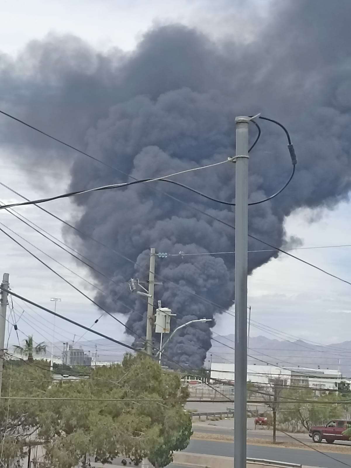 Chihuahua. - Un incendio de grandes proporciones se registra esta tarde al sur de la ciudad, generando una intensa columna de humo negro que es visible desde prácticamente cualquier punto de la capital.