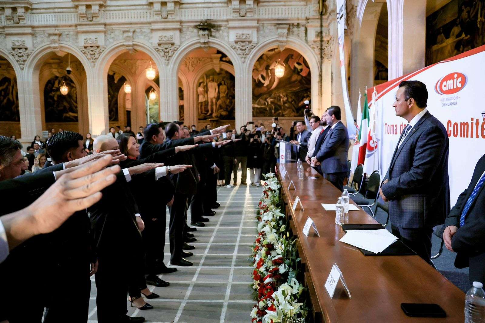 Chihuahua, Chih.- El alcalde Marco Bonilla, asistió a la toma de protesta de la Comité Directivo 2026 - 2028 de la Cámara Mexicana de la Industria de la Construcción (CMIC) Delegación Chihuahua, donde felicitó a Juan Carlos Montaño, nuevo presidente de este organismo, a quien le deseó el mayor de los éxitos.
