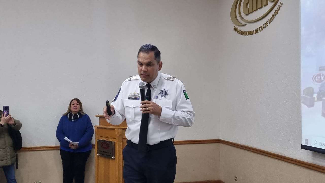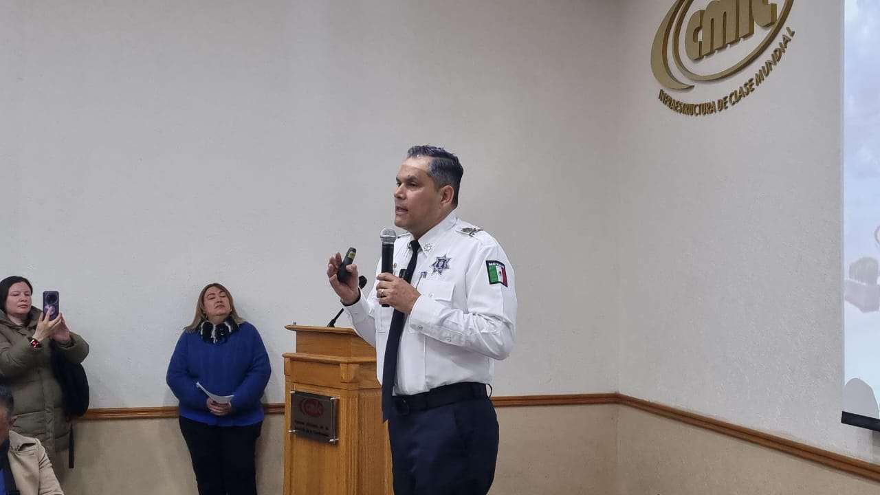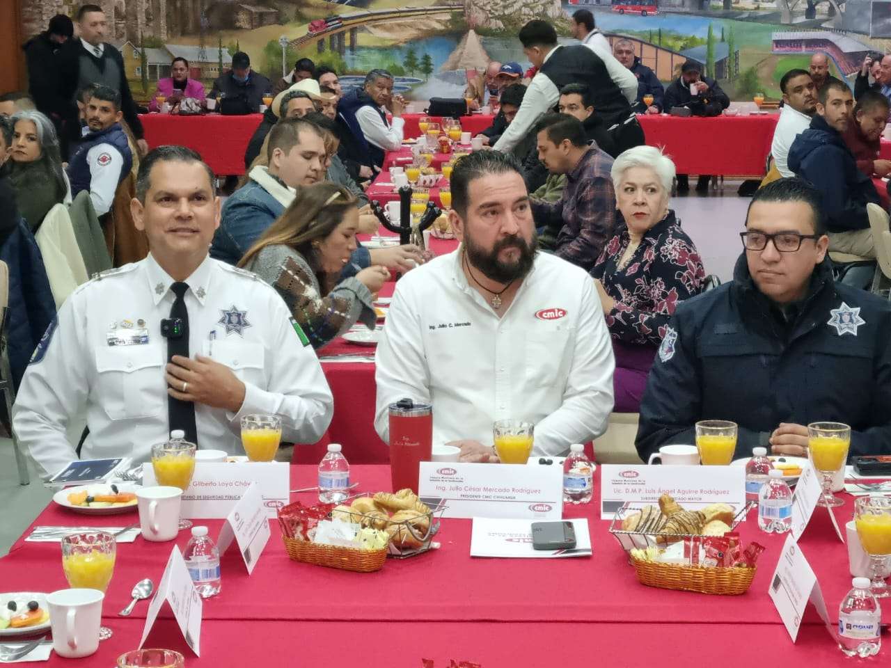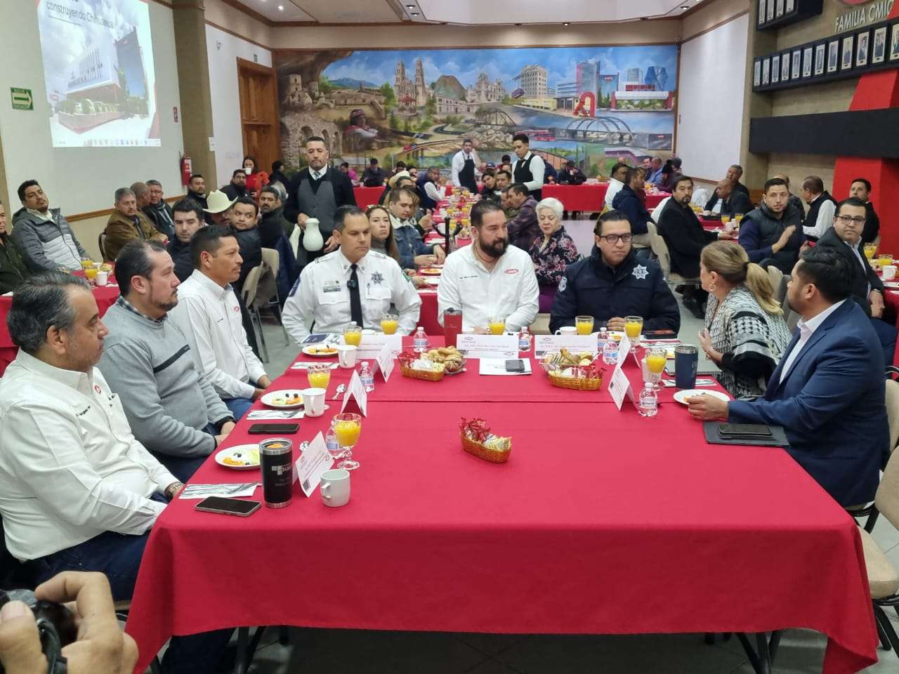 Chihuahua.- Esta mañana, la Cámara Mexicana de la Industria de la Construcción (CMIC) llevó a cabo un desayuno en el que estuvieron presentes su presidente, Julio César Mercado, y como invitado especial el secretario de Seguridad Pública Estatal, Gilberto Loya.